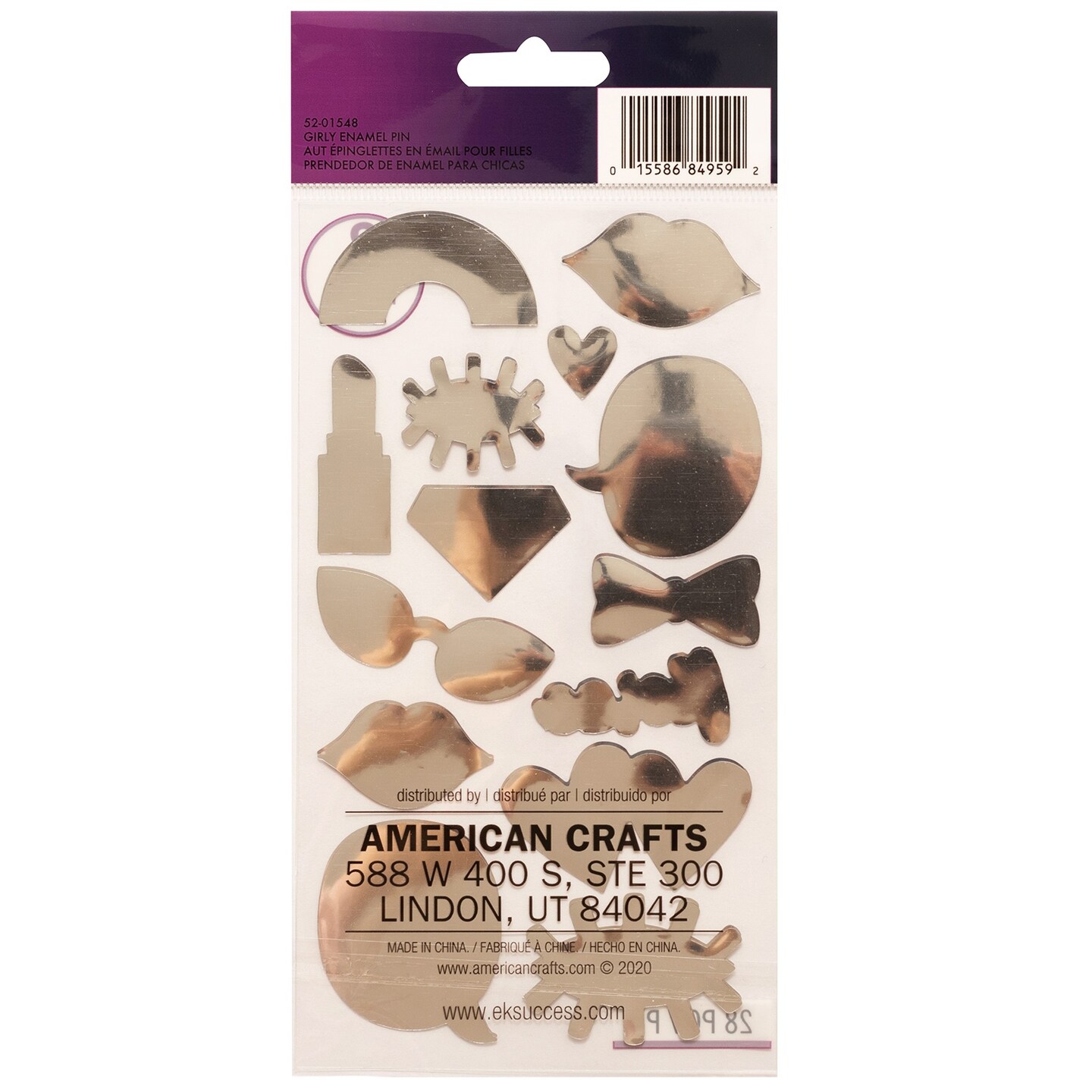 Sticko Flat Stickers-Girly Enamel Pin, 28/Pkg