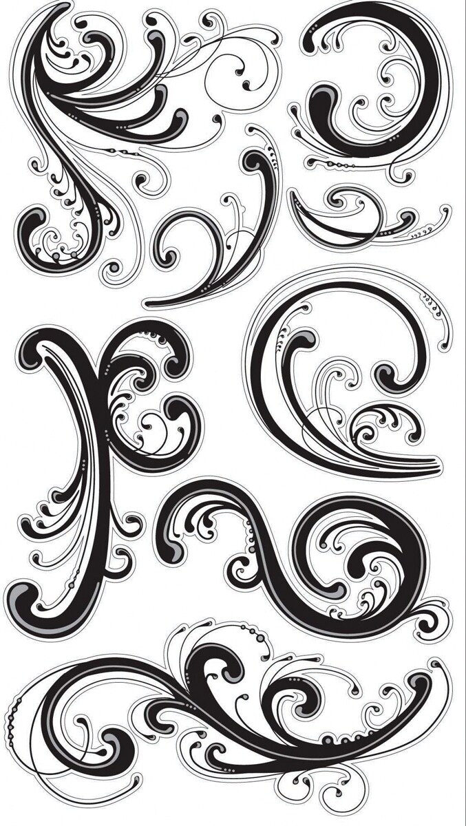 Sticko Stickers - Dainty Black Flourishes, 8pcs