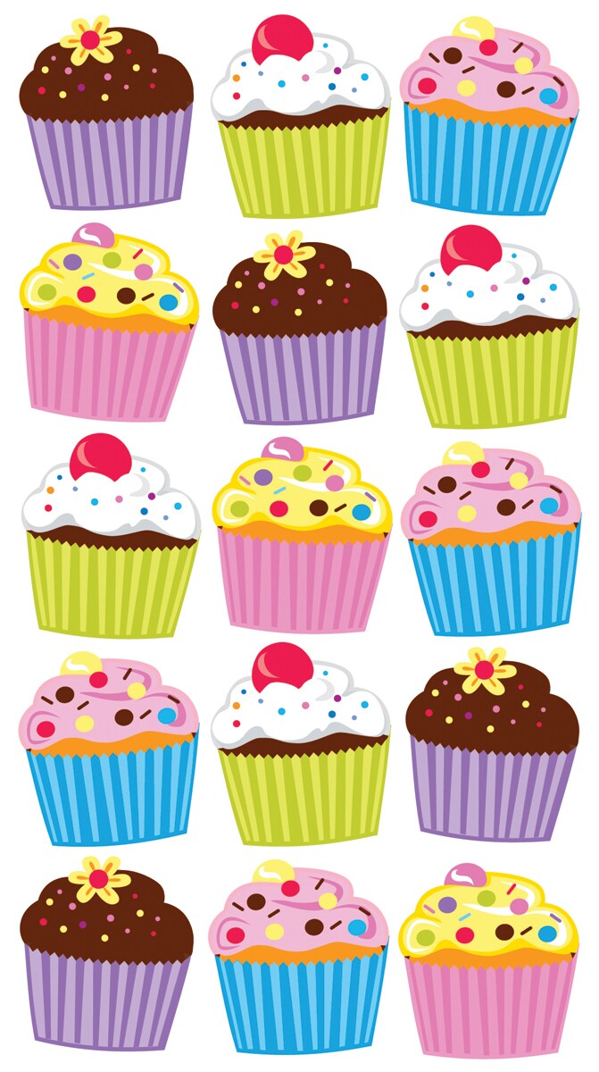 Sticko Stickers - Vellum & Glitter Bright Cupcakes, 12pcs