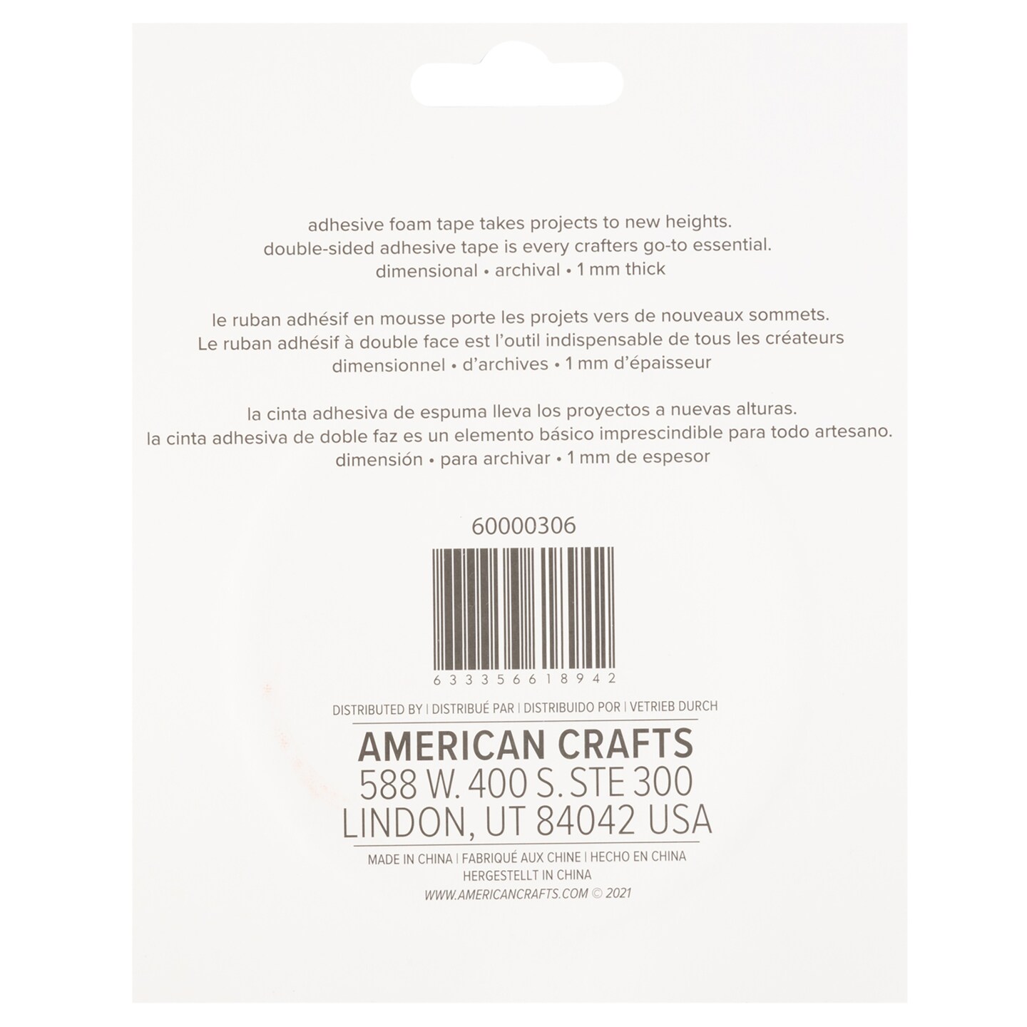 Sticky Thumb Double-Sided Foam Tape 3.94 Yards-White, 0.25"X1mm