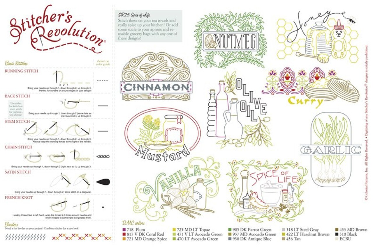Stitcher's Revolution Spice of Life SR25 embroidery iron on pattern