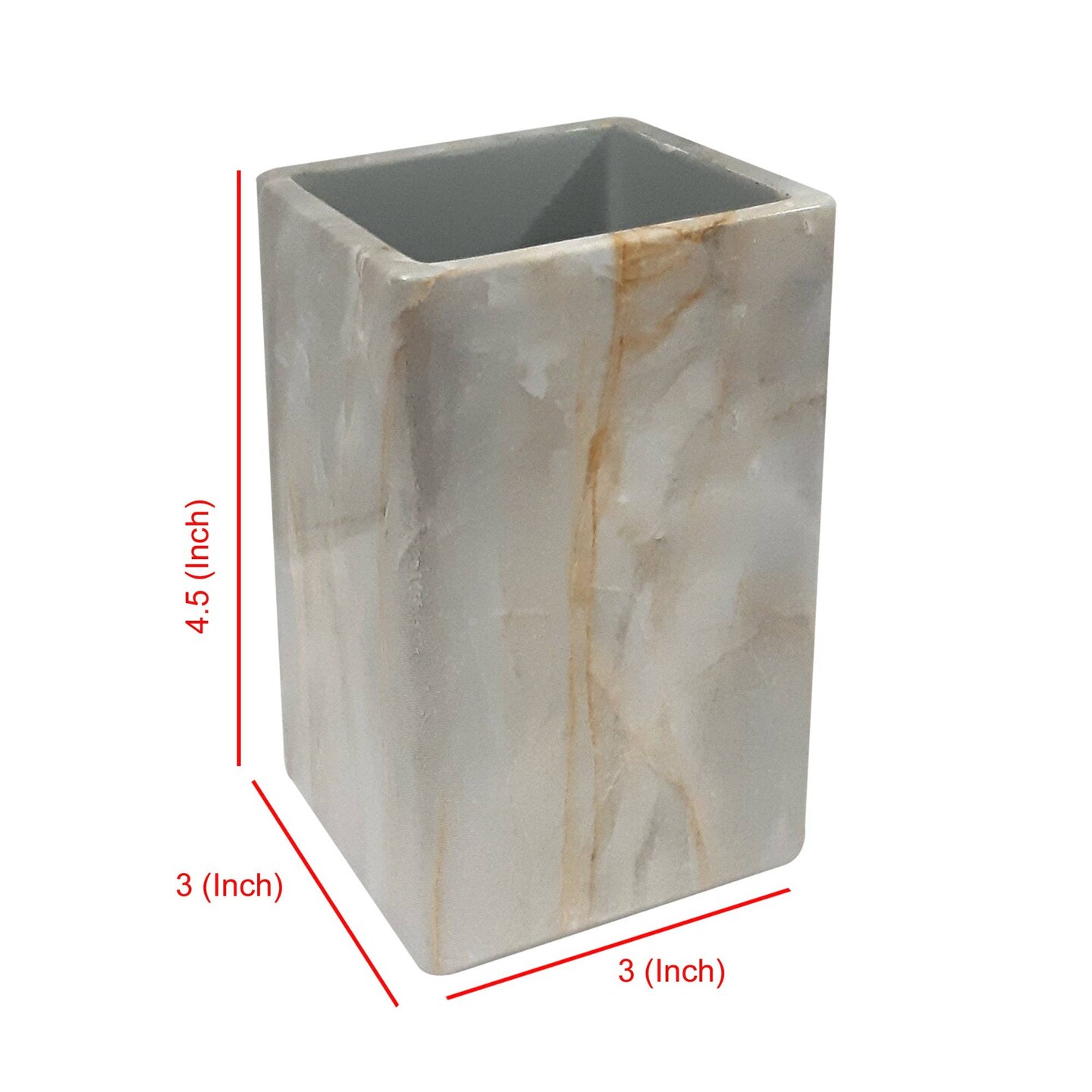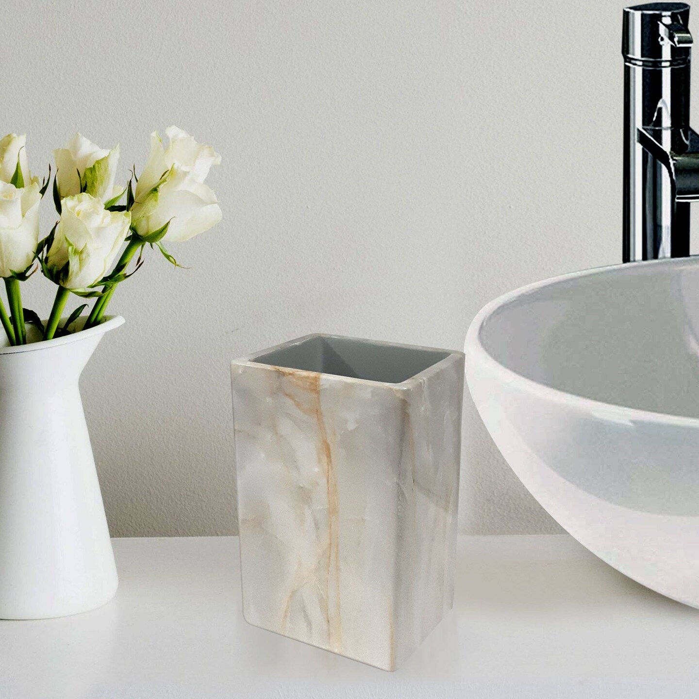 Stone Hedge Resin Bathroom Tumbler Cup | Decorative Rinse Cup,Drinking Glass,Toothbrush & Makeup Brush Holder for Vanity Countertops,Sink & Desk | Marble Finish