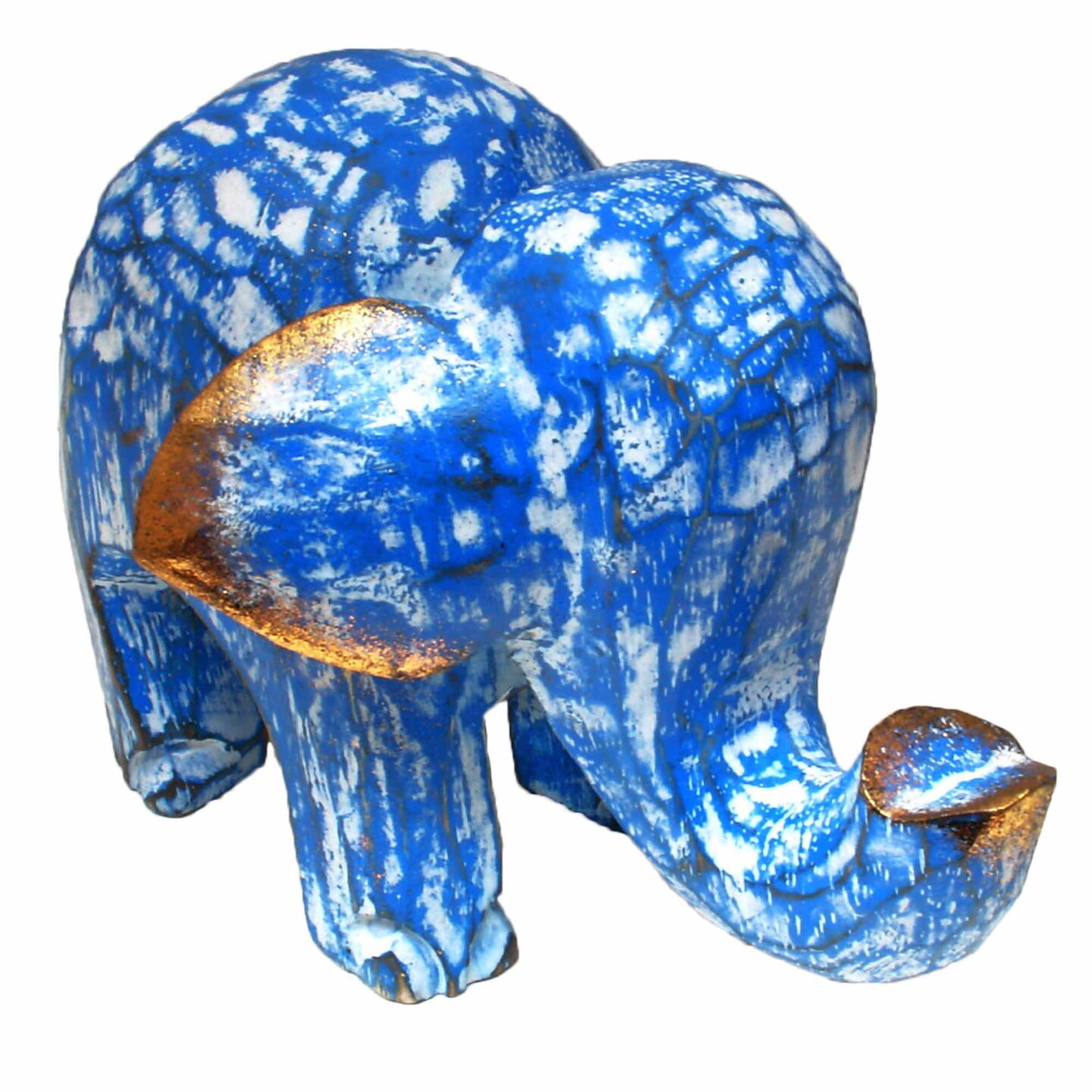 Stoneage Arts Inc 5" Blue Handmade Wooden Elephant Statue