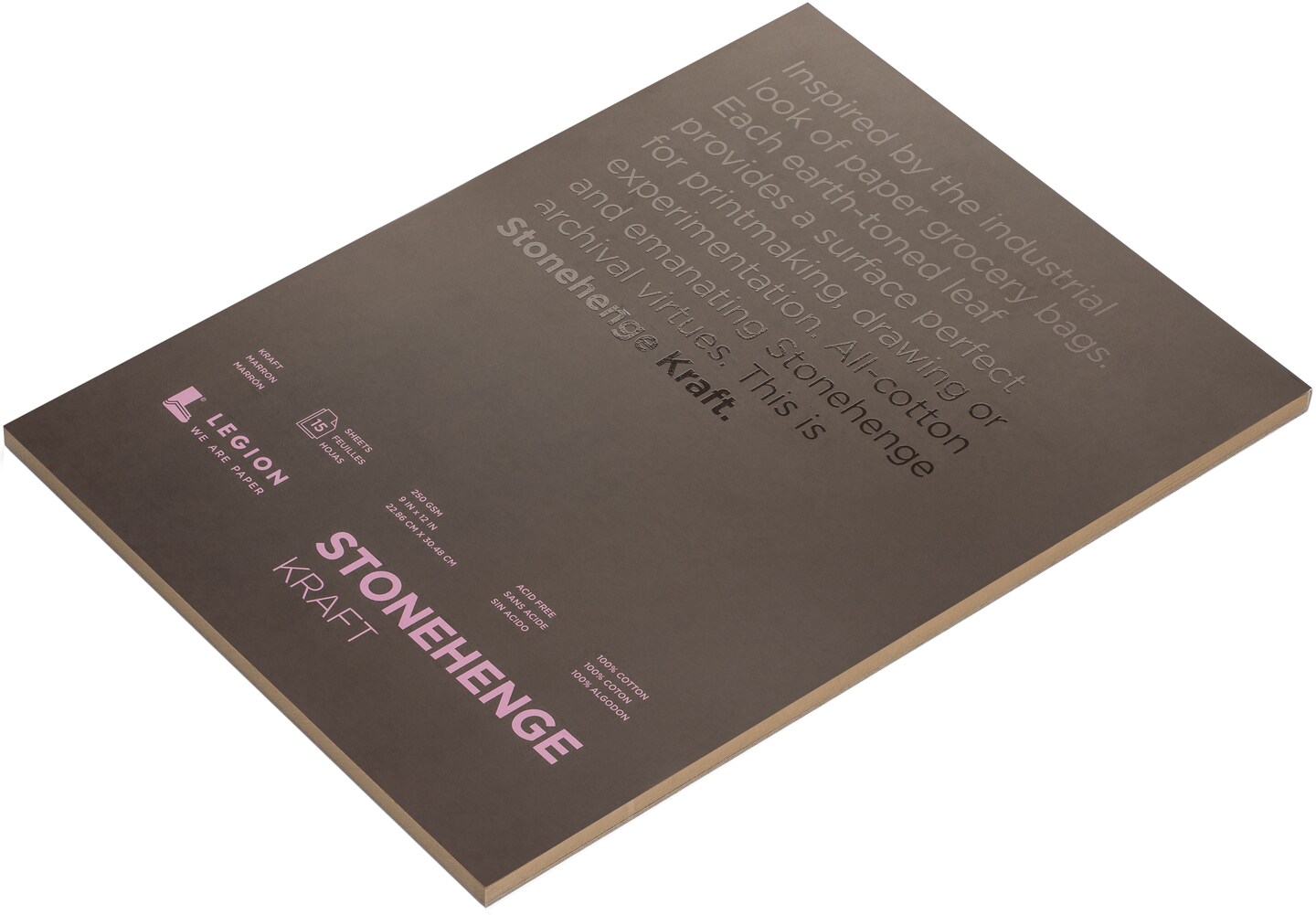 Stonehenge 100% Cotton Paper Pad 9"X12" 15 Sheets/Pkg-Kraft 250gsm
