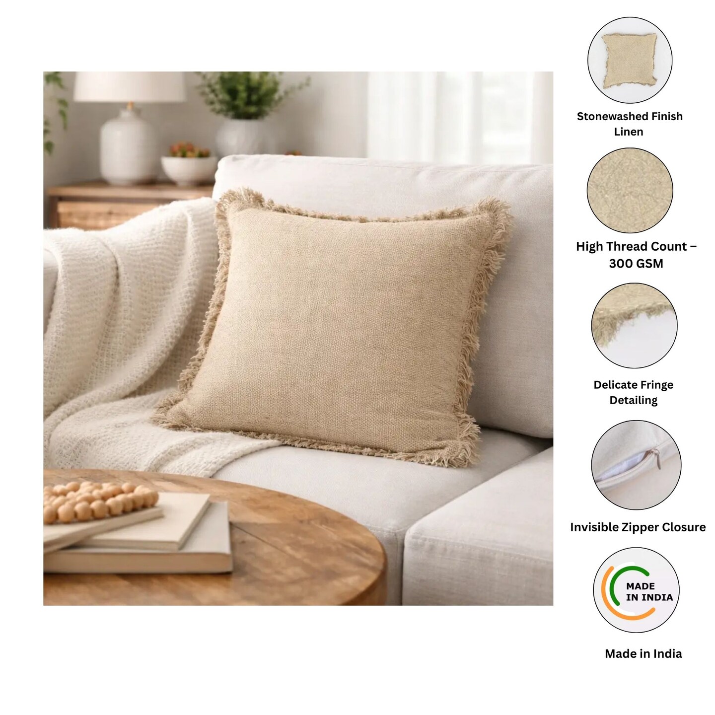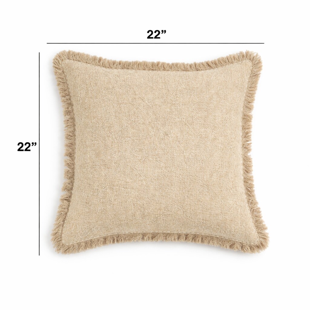 Stonewashed Linen Throw Pillow with Handworked Edges & Fringe - 22" x 22"