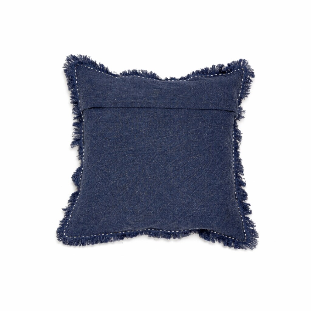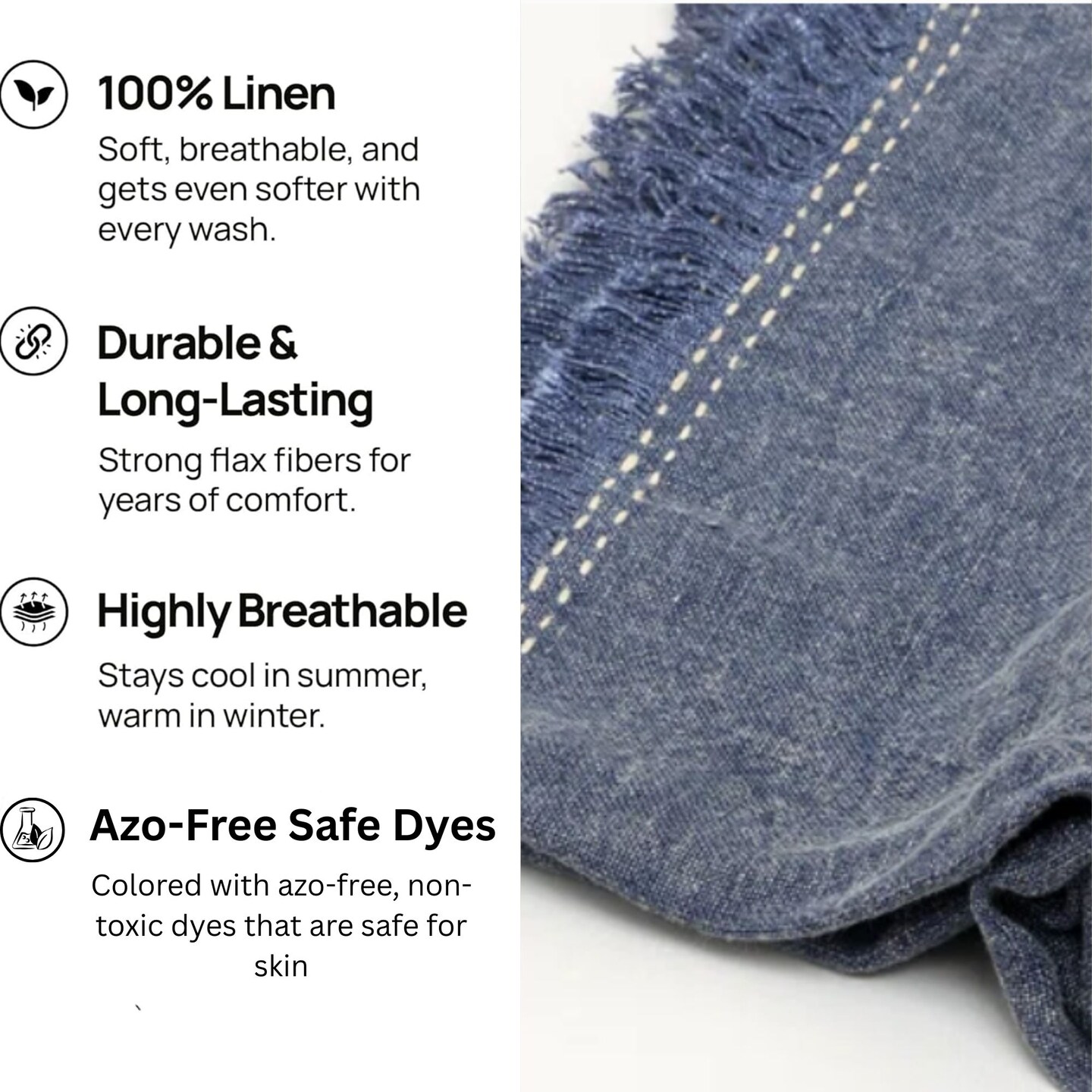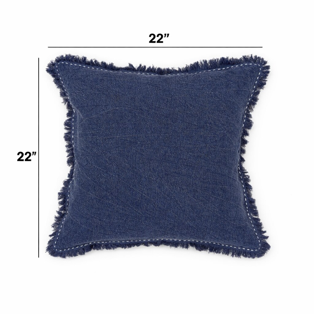 Stonewashed Linen Throw Pillow with Handworked Edges & Fringe - 22" x 22"