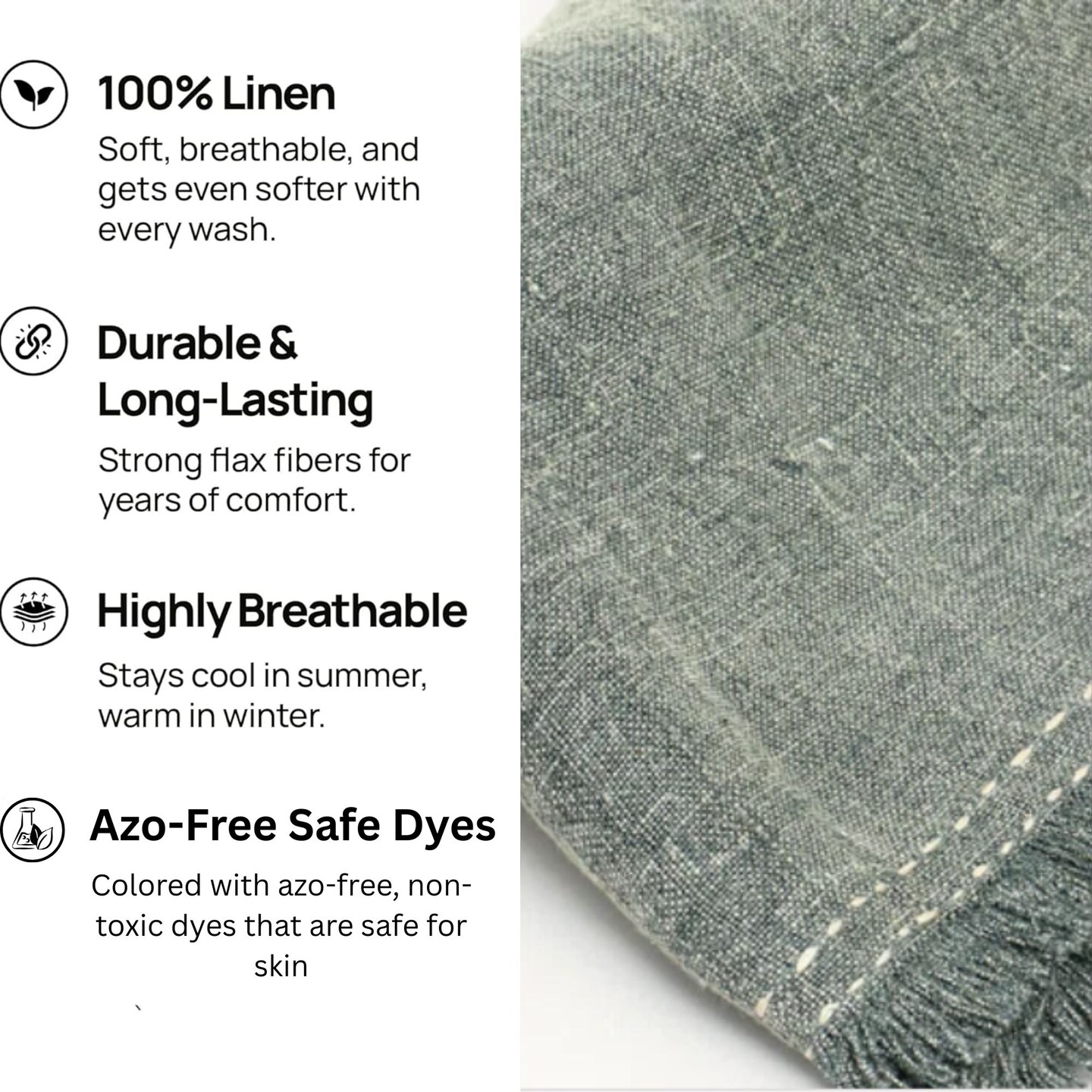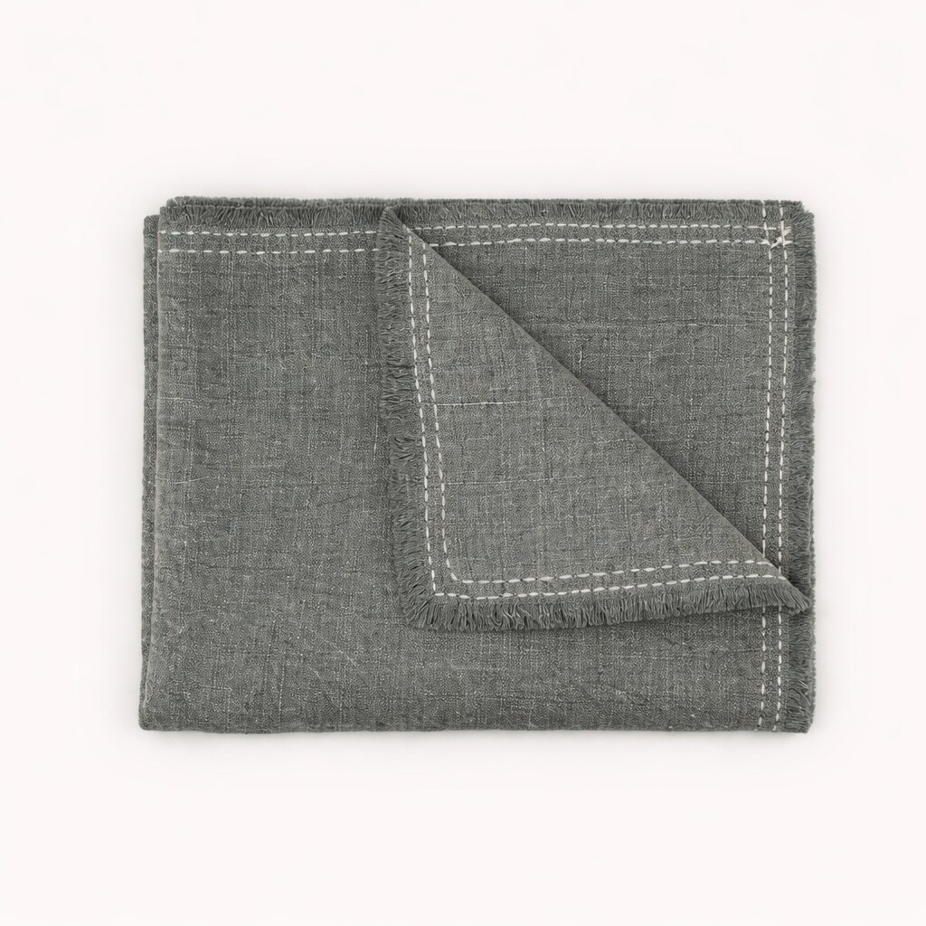 Stonewashed Linen Woven Throw Blanket | Fringe | 52” x 68” | Cozy Decorative Throw