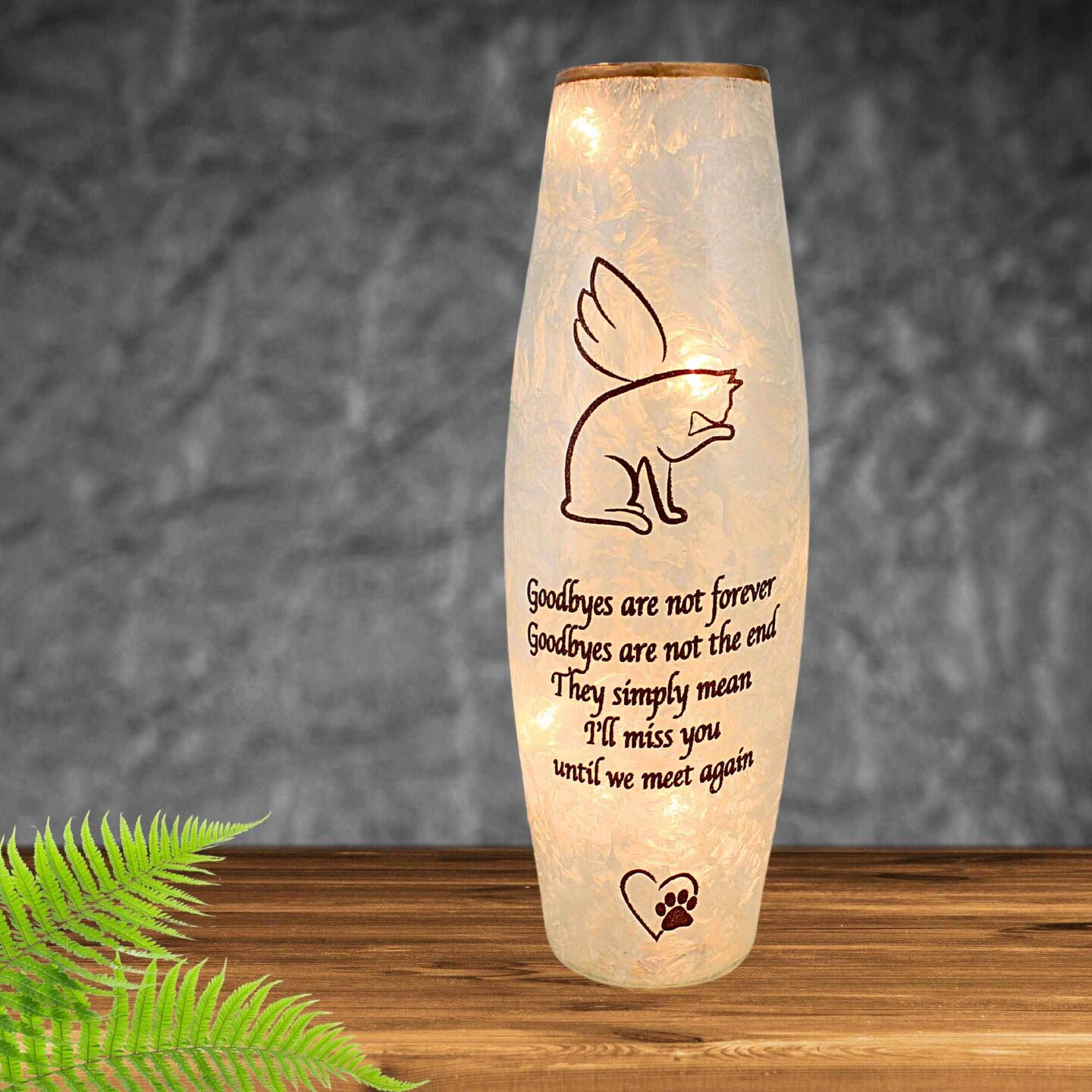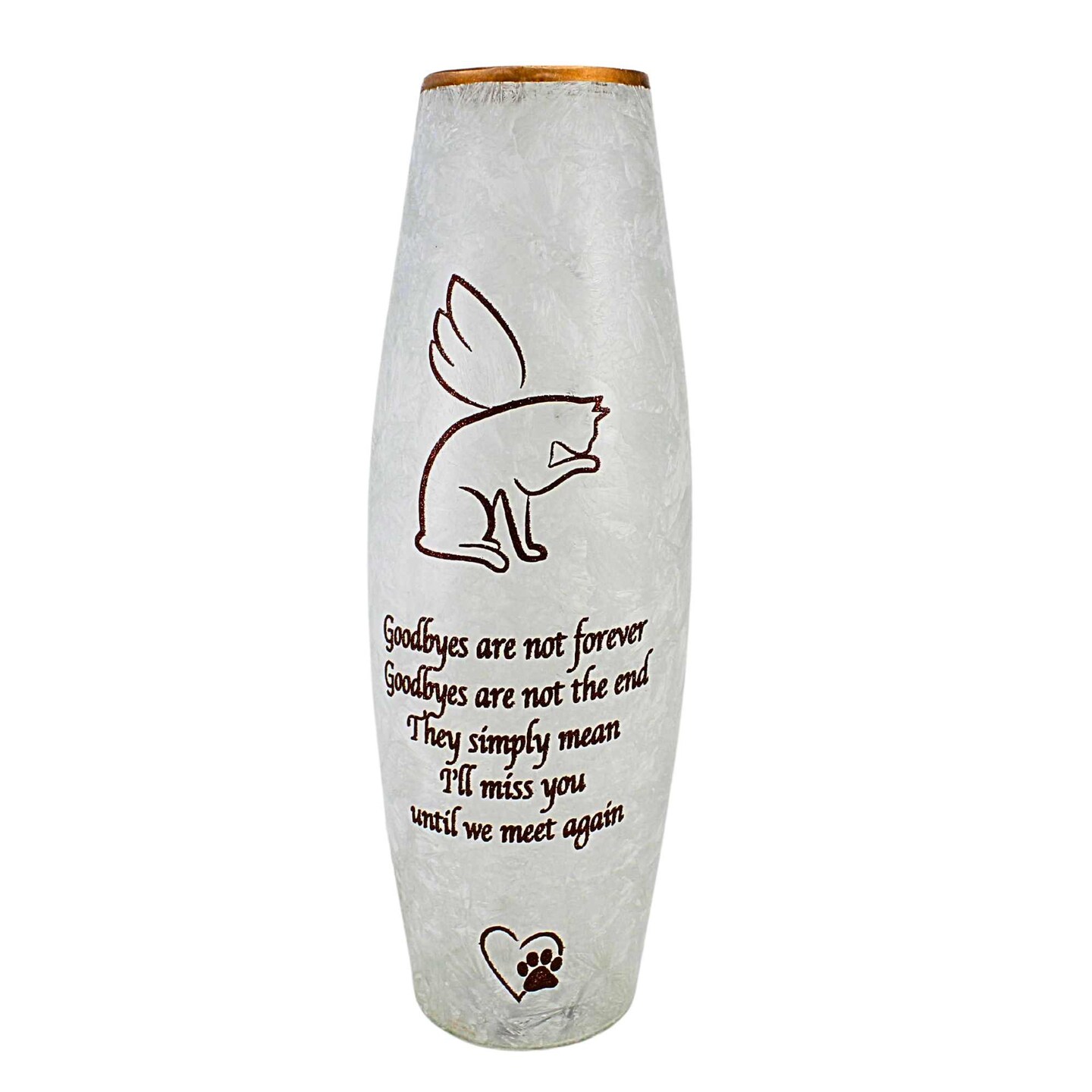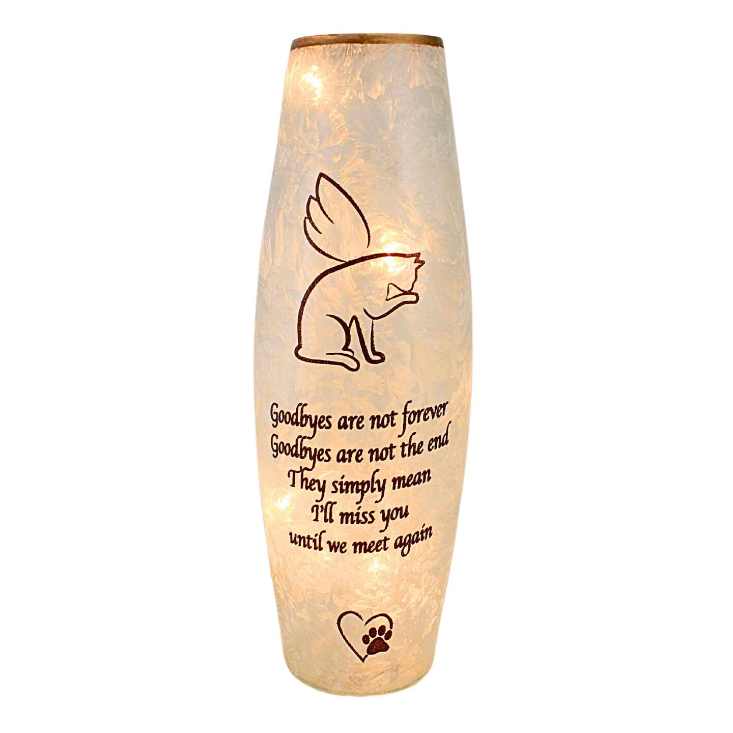 Stony Creek 12.0 Inch Best Friend Cat Pre Lit Vase Bereavement Lighted Glass Accent , Angel Feline Heart Poawprint