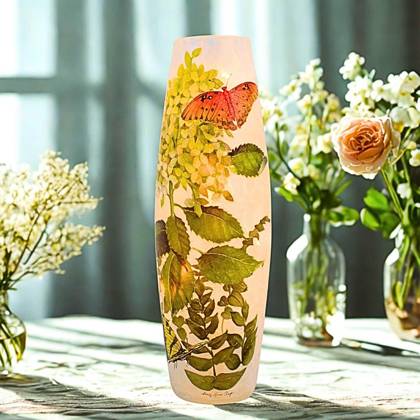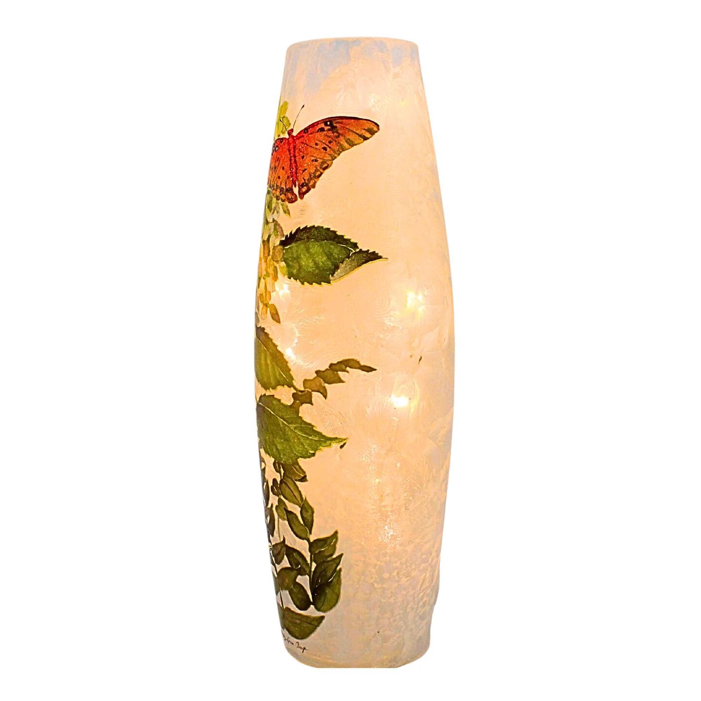 Stony Creek 12.0 Inch Flutters & Flowers Pre-Lit Large Vase Summer Lighted Glass Accent , Timer Led Summer