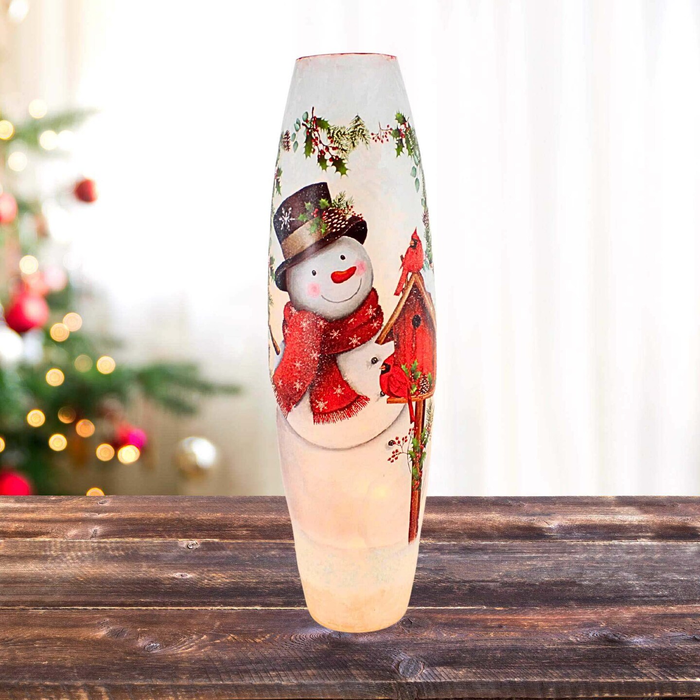 Stony Creek 23.5 Inch Happy Snowman Pre-Lit Super Colossal Vase Christmas Lighted Glass Accent , Electric Plug-In Snow Home