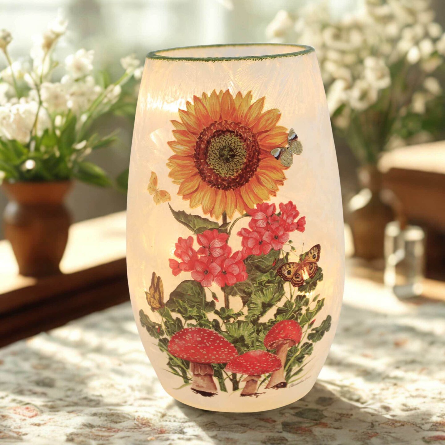 Stony Creek 5.0 Inch Botanicals Pre-Lit Small Vase Spring Lighted Glass Accent , Led Spring Summer