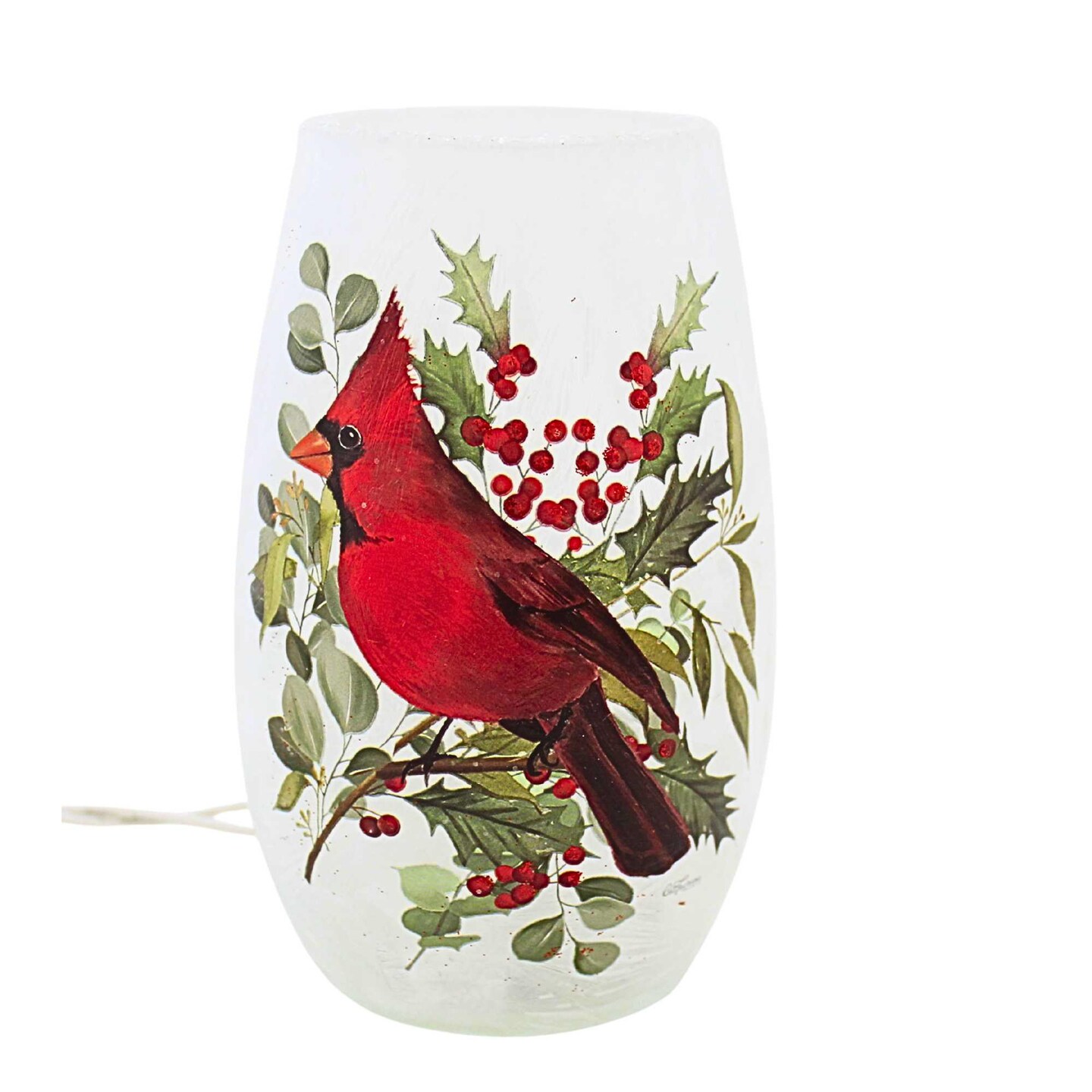 Stony Creek 5.25 In Cardinal Christmas Pre-Lit Small Vase Christmas Lighted Glass Accent , Christmas Red Bird