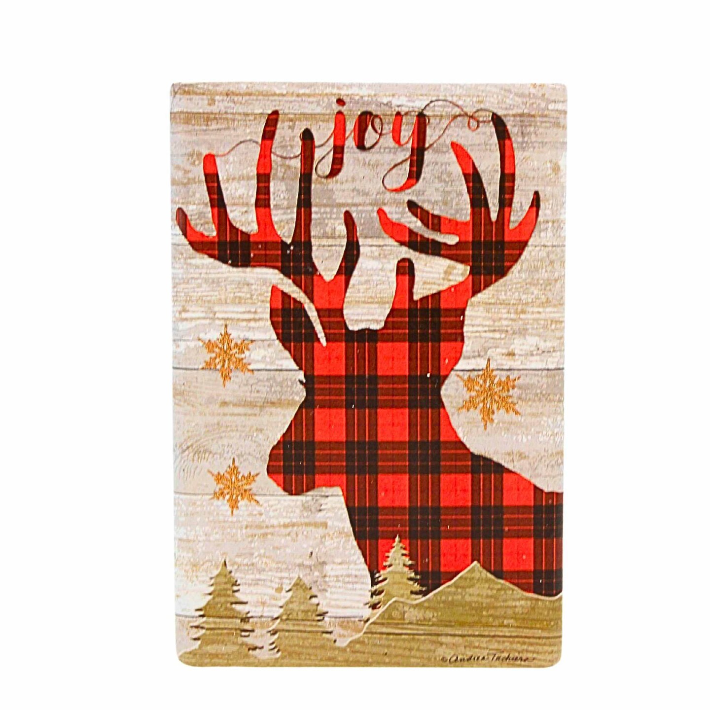 Stony Creek 6.0 Inch Lighted Rectangle Glass Vase Christmas Lighted Glass Accent , Plaid Joy