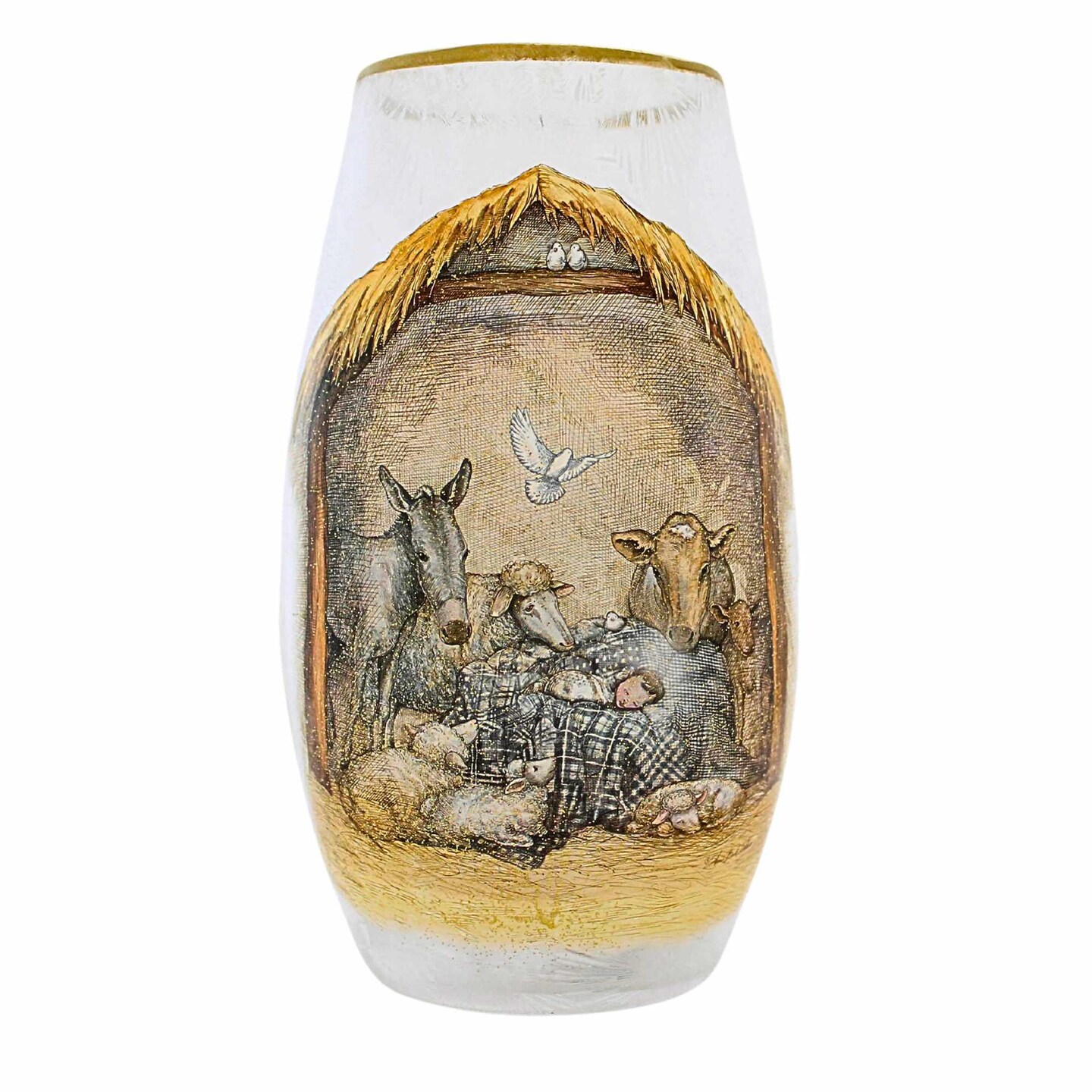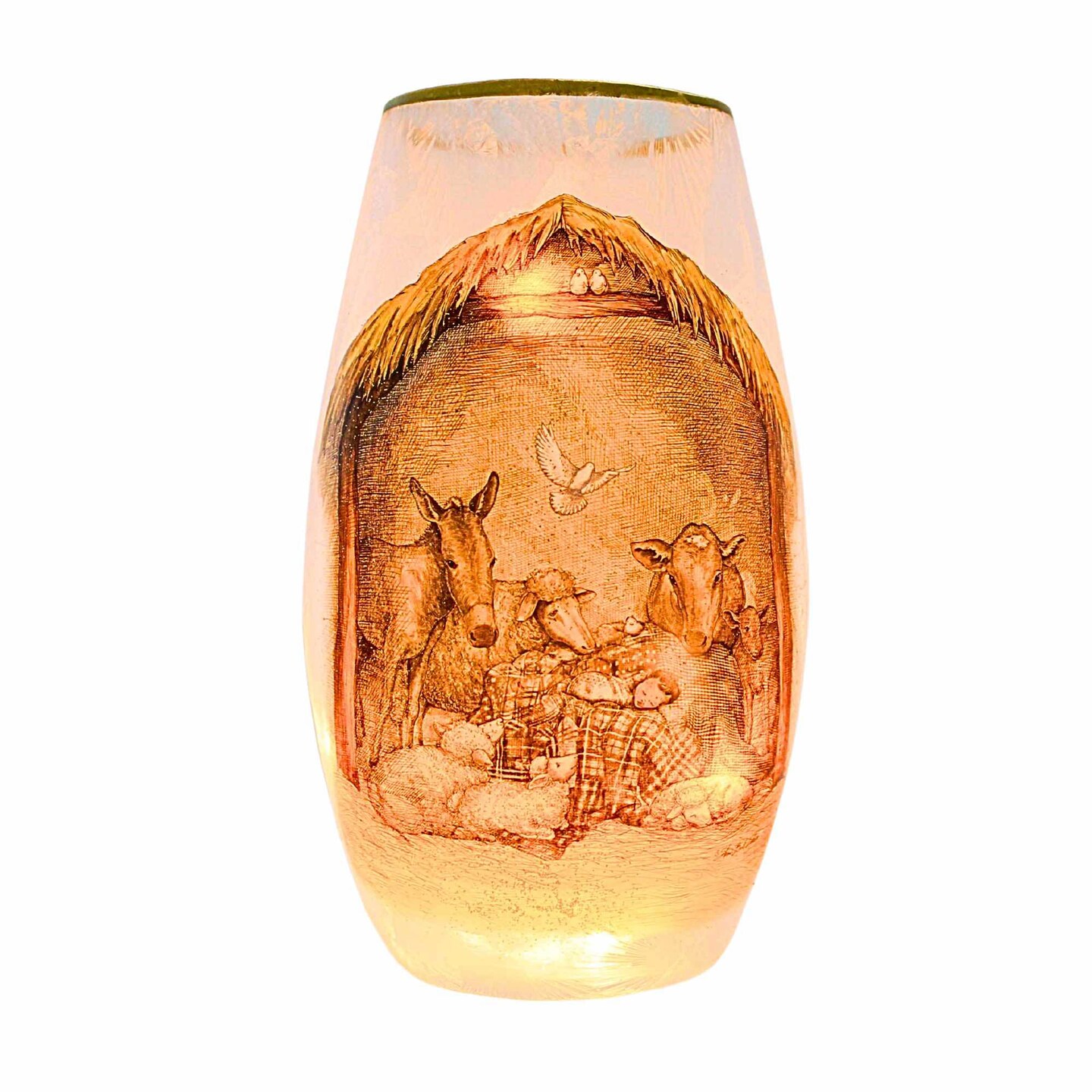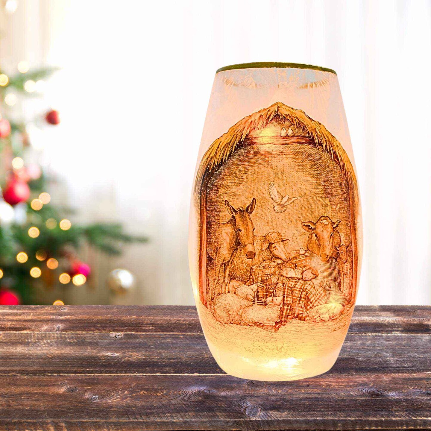 Stony Creek 7.0 Inch Nativity Pre-Lit Med Vase Christmas Lighted Glass Accent , Electric Christmas Baby Jesus