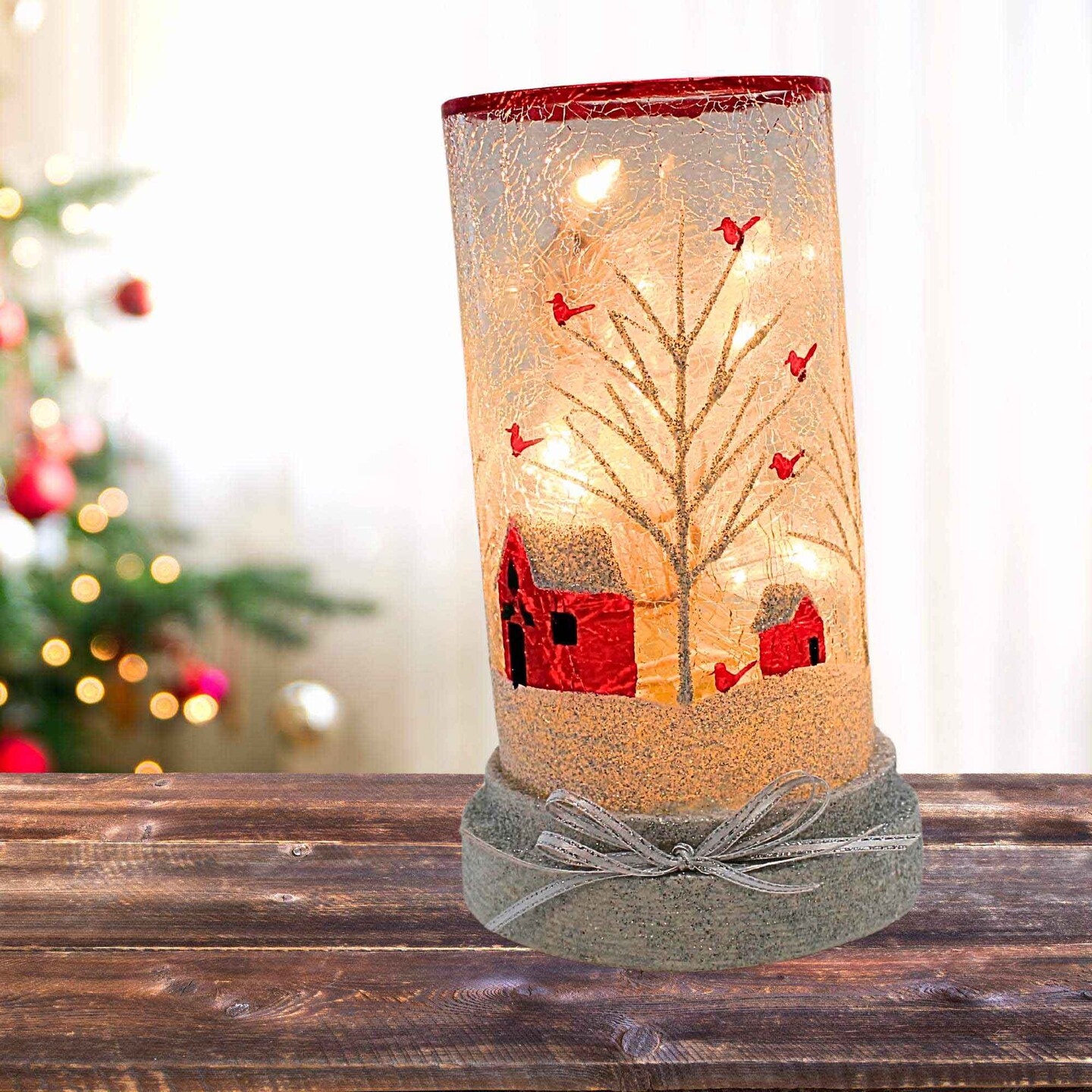 Stony Creek 8.25 In Clearly Winter Hurricane Pre-Lit Christmas Lighted Glass Accent , Christmas Decor Cardinal Barn
