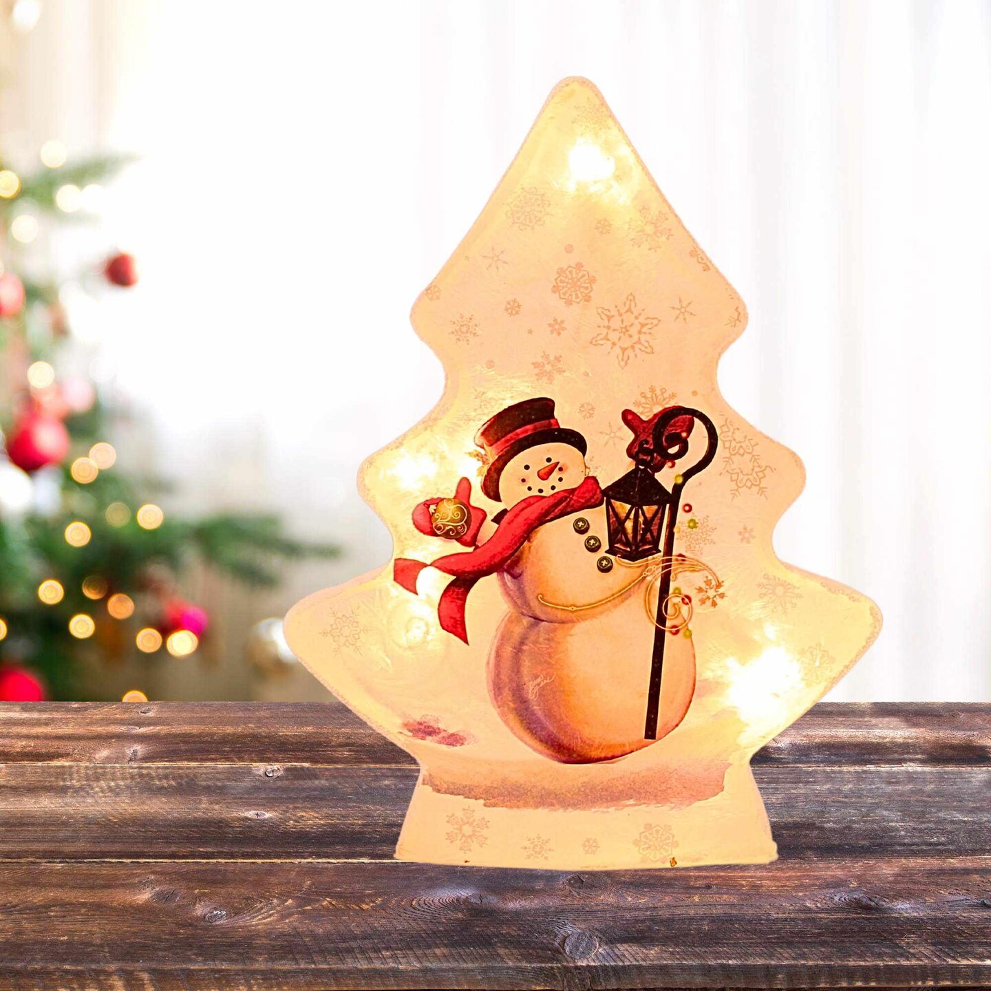 Stony Creek 8.5 Inch Jolly Snowman Christmas Tree Christmas Lighted Glass Accent , Snow Electric Winter