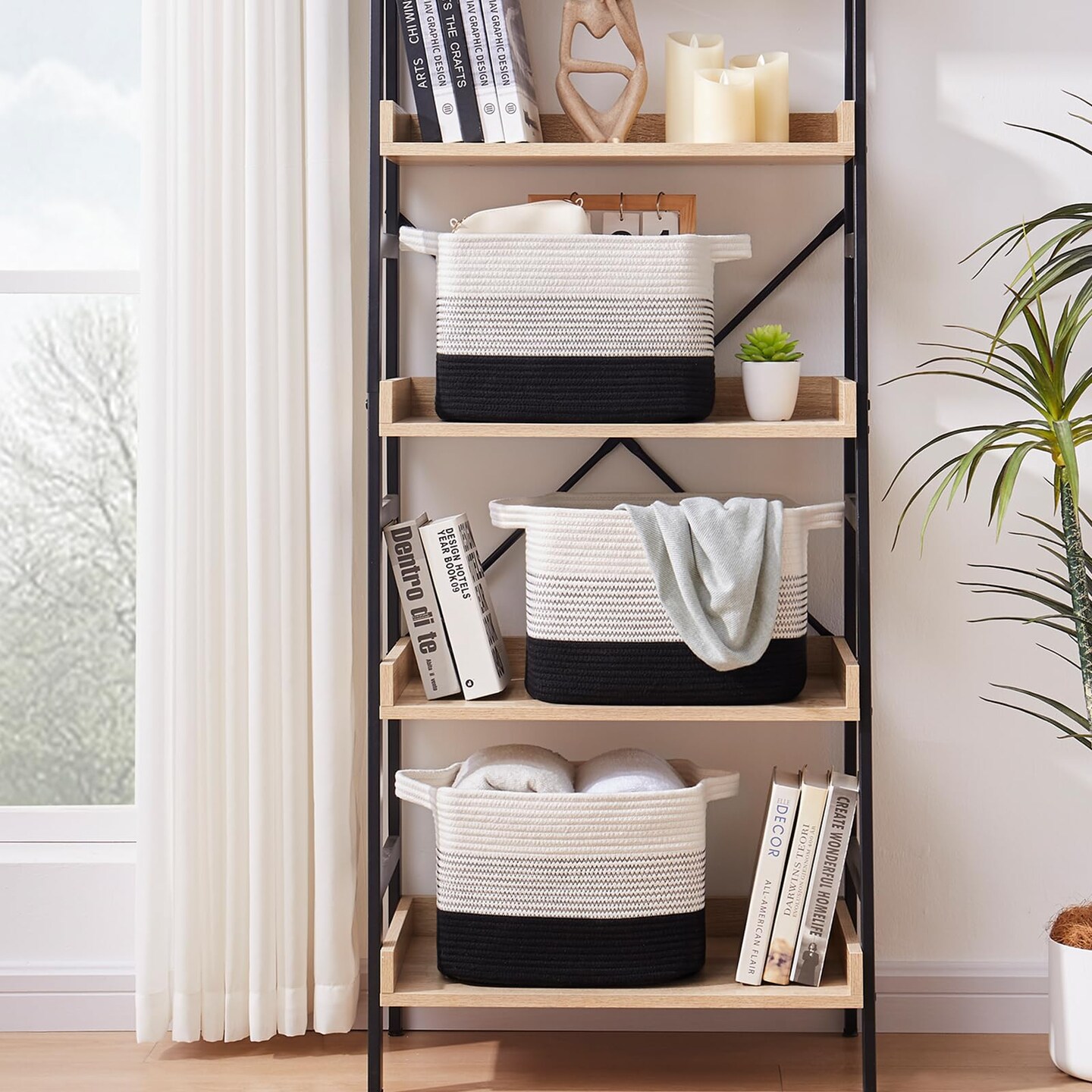 Storage Baskets for Organizing, Woven Baskets for Shelves, Rectangle Decorative Organizer for Storage Clothes, Toy, Books, Towels Nursery Bins 3 Pack (Gradient Black)