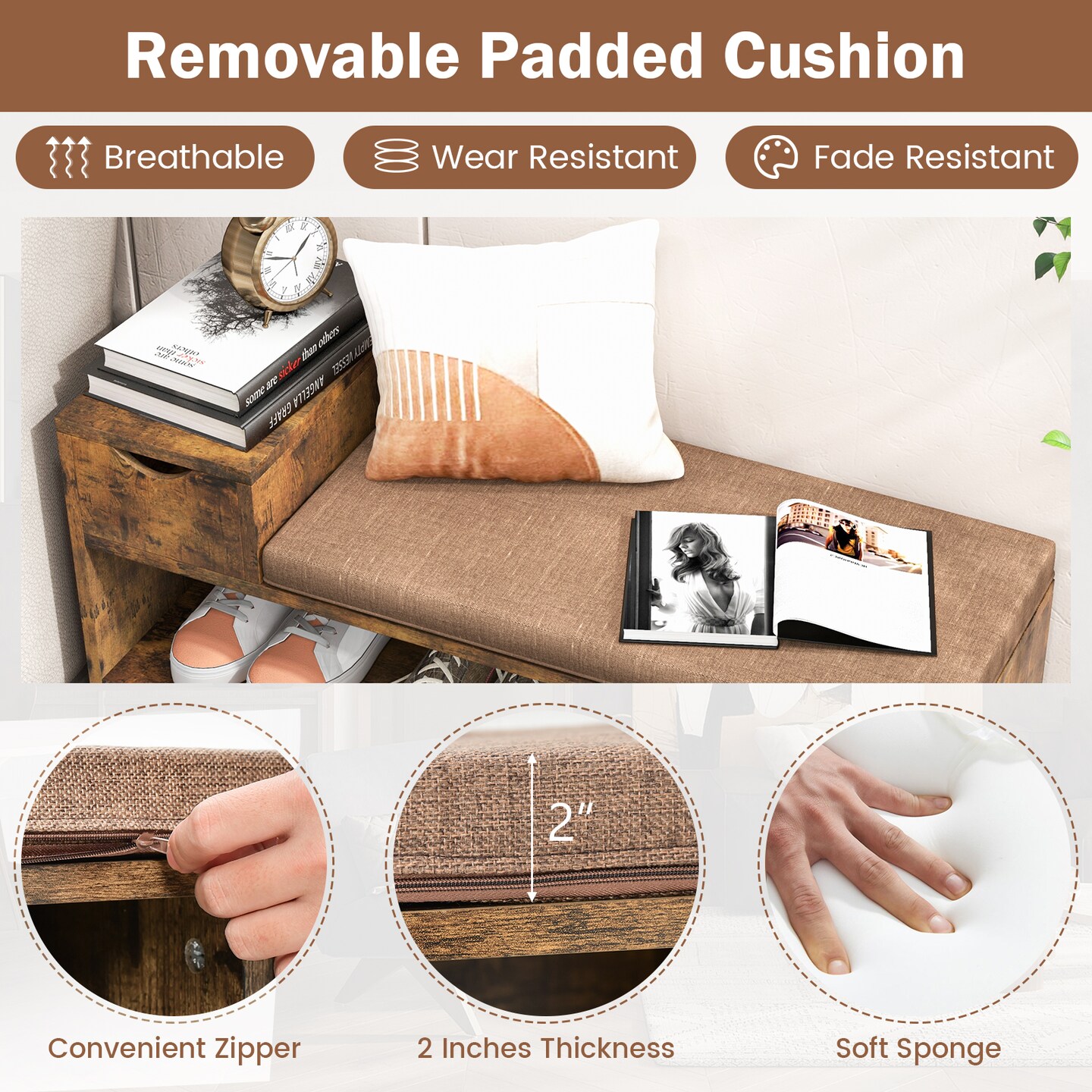 Storage Bench with Drawer and Open Shelves for Entryway and Shoes