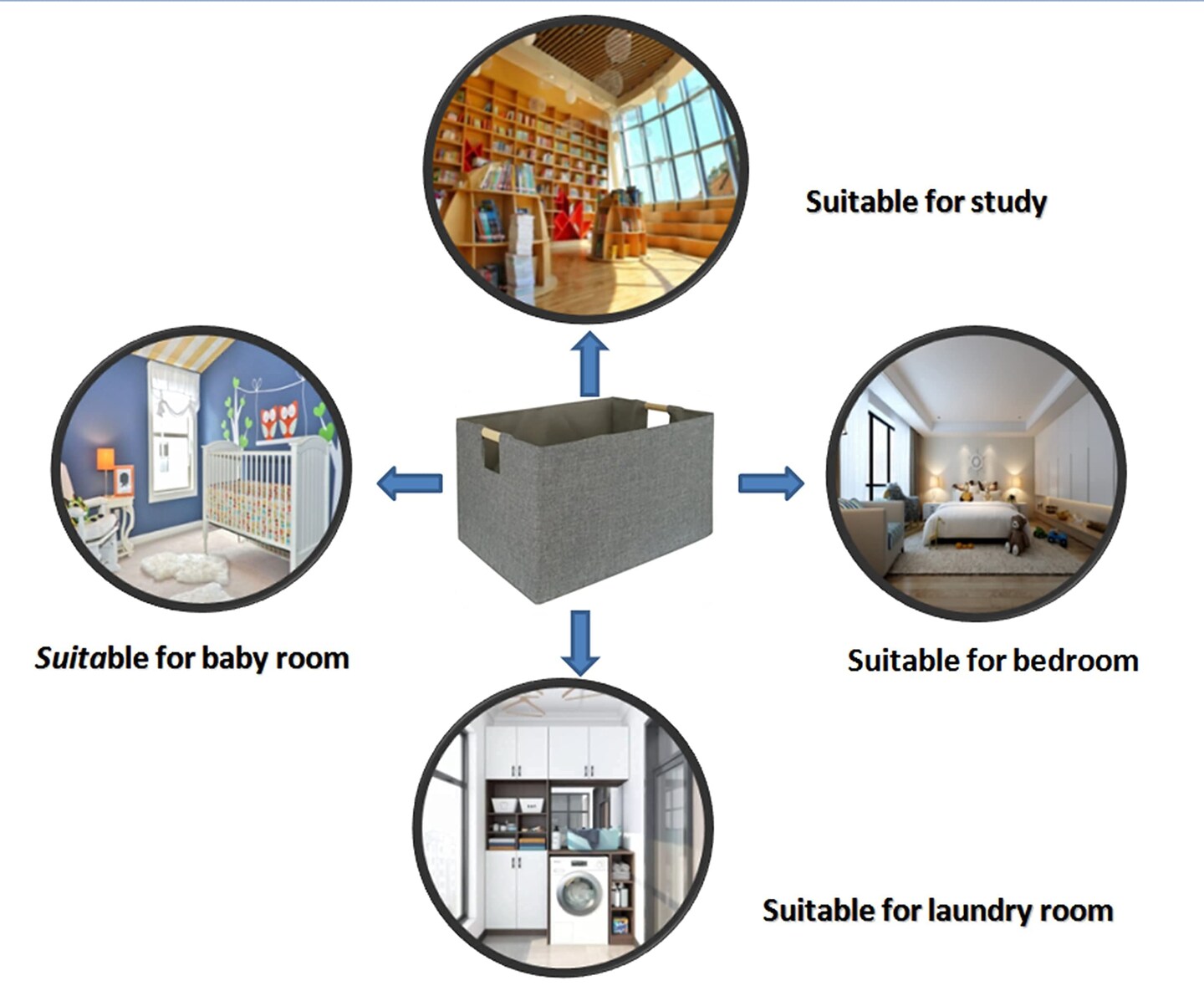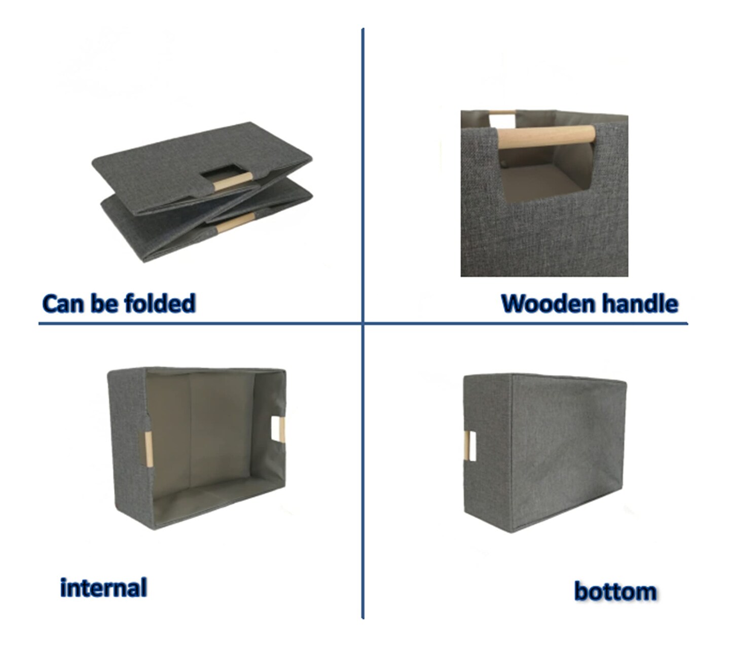 Storage Bin for Shelves Rectangle Closet Baskets Foldable Box with Handles Gray Shelf Baskets Toy Boxes for Home Office Car Dormroom