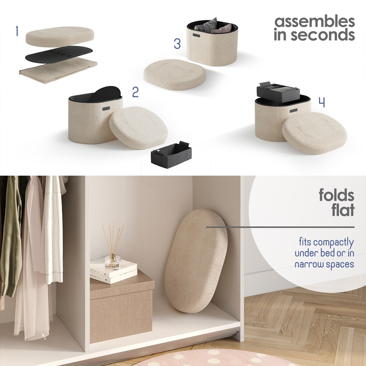 StorageBud Ottoman with Storage for Living Room