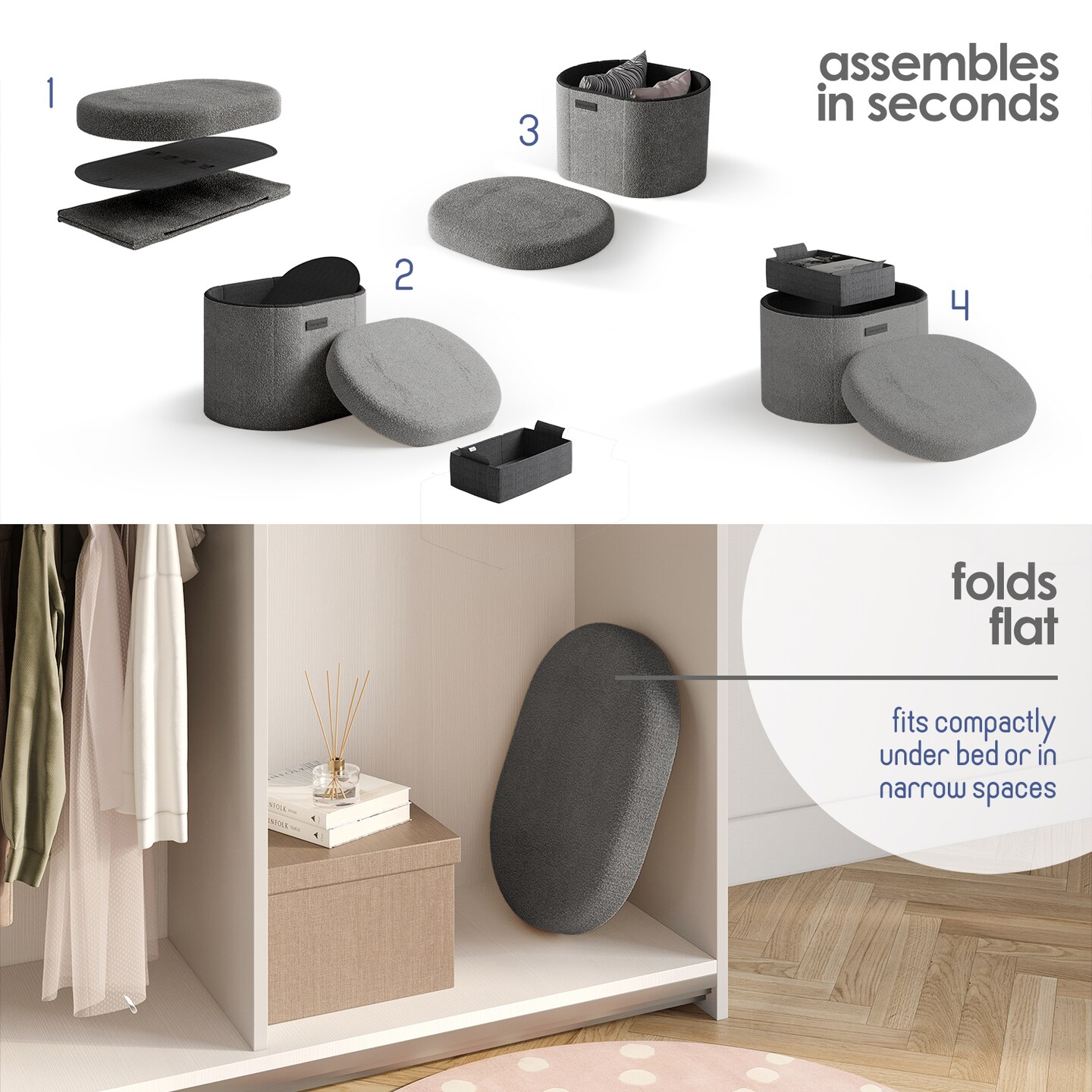 StorageBud Ottoman with Storage for Living Room