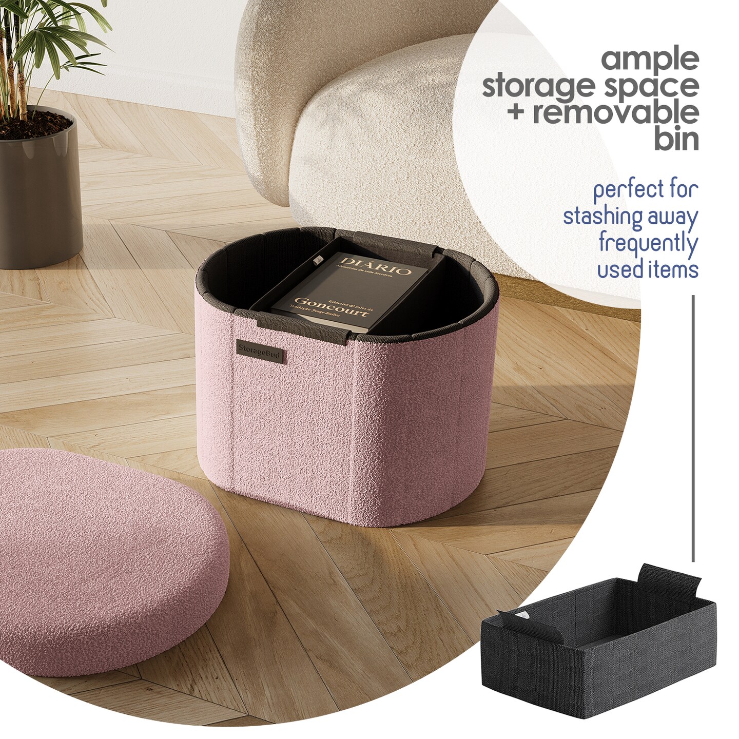 StorageBud Ottoman with Storage for Living Room