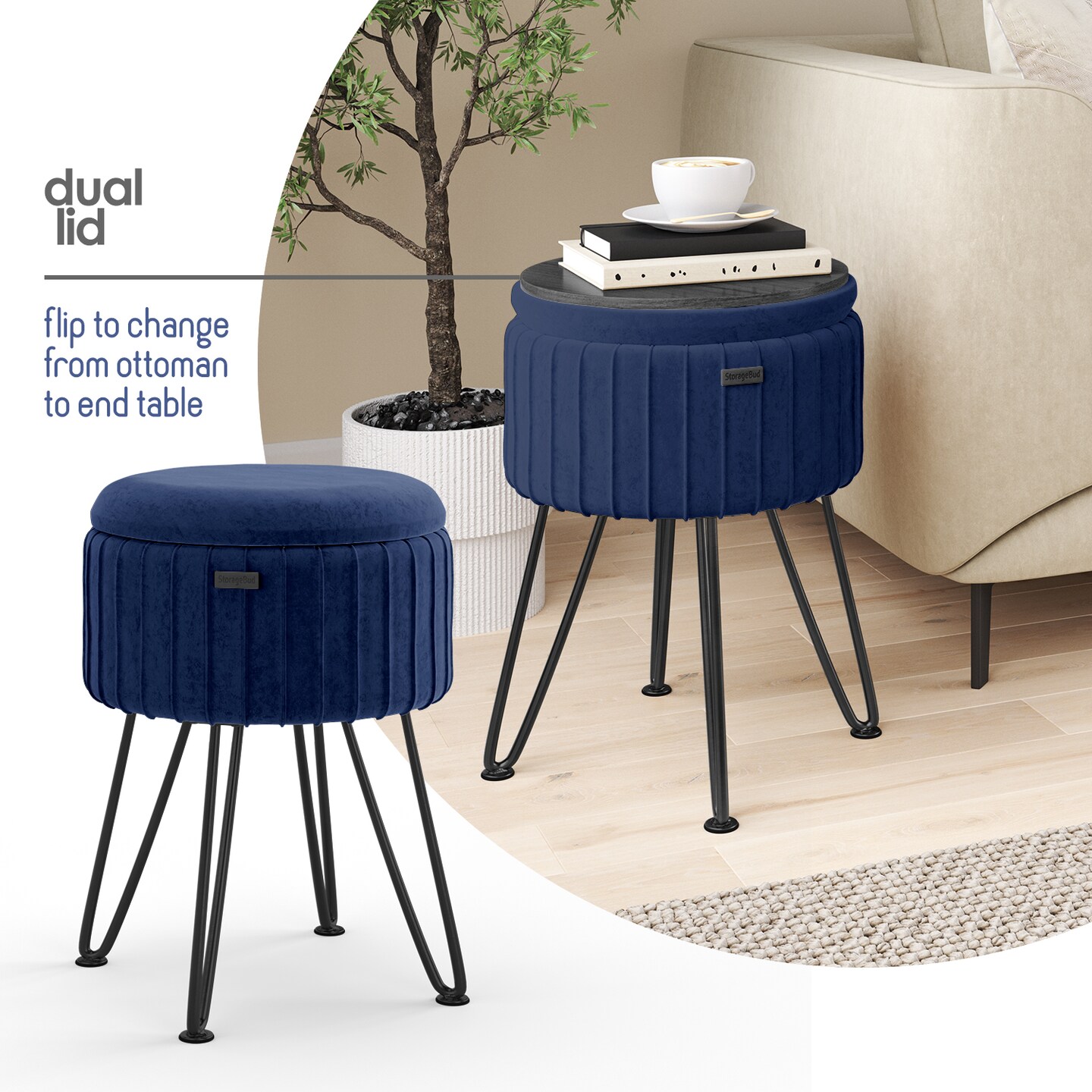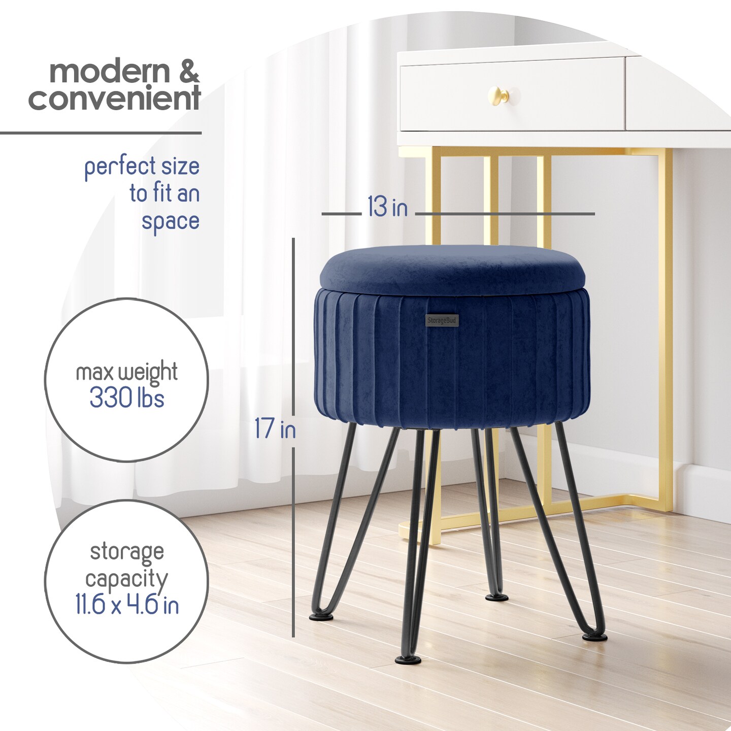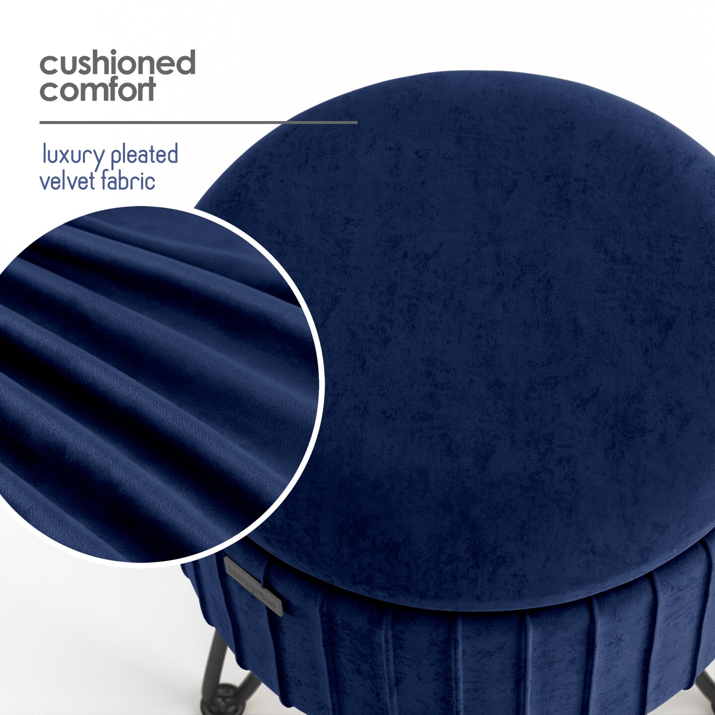 StorageBud Pleated Velvet Storage Ottoman