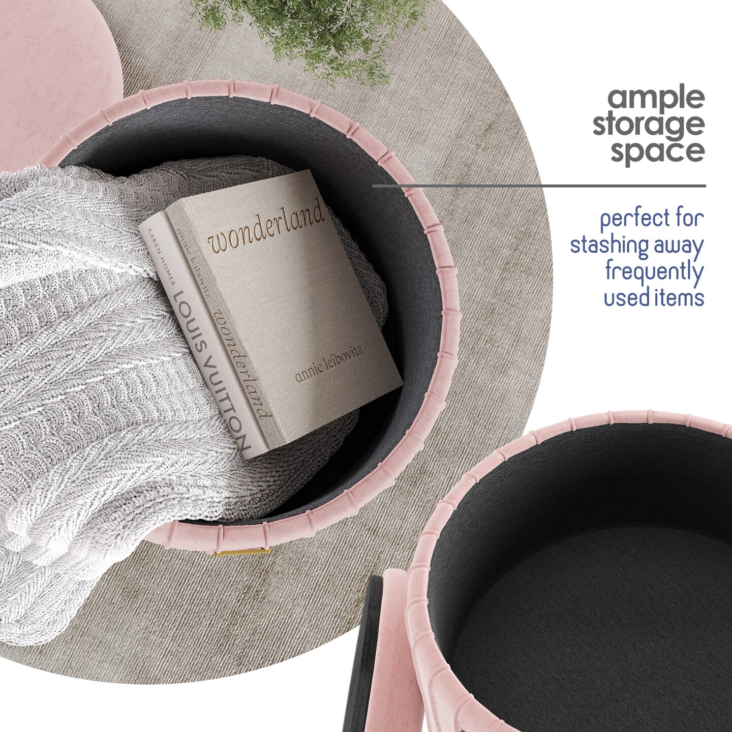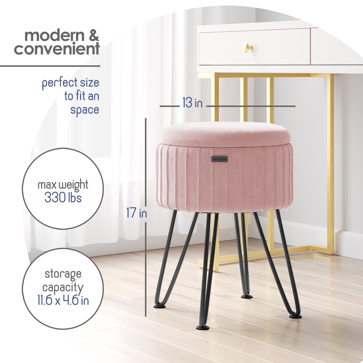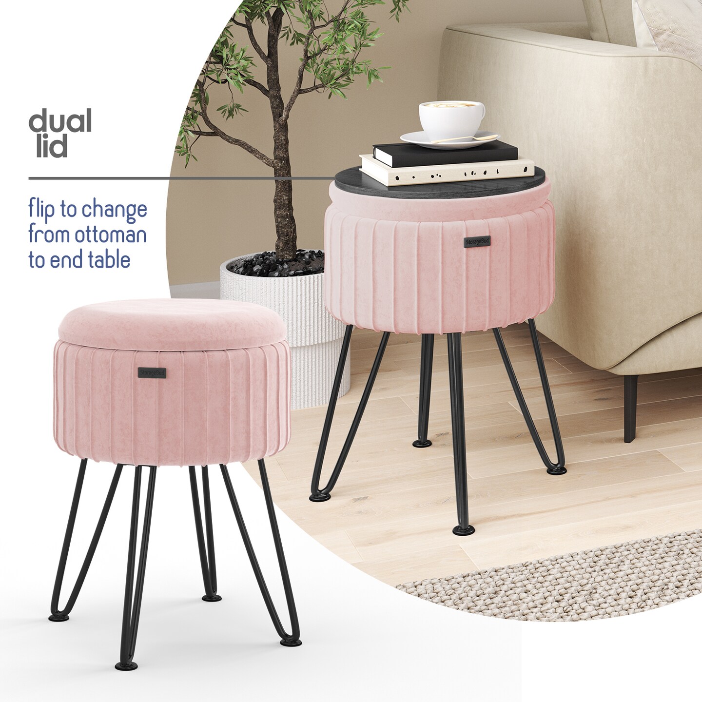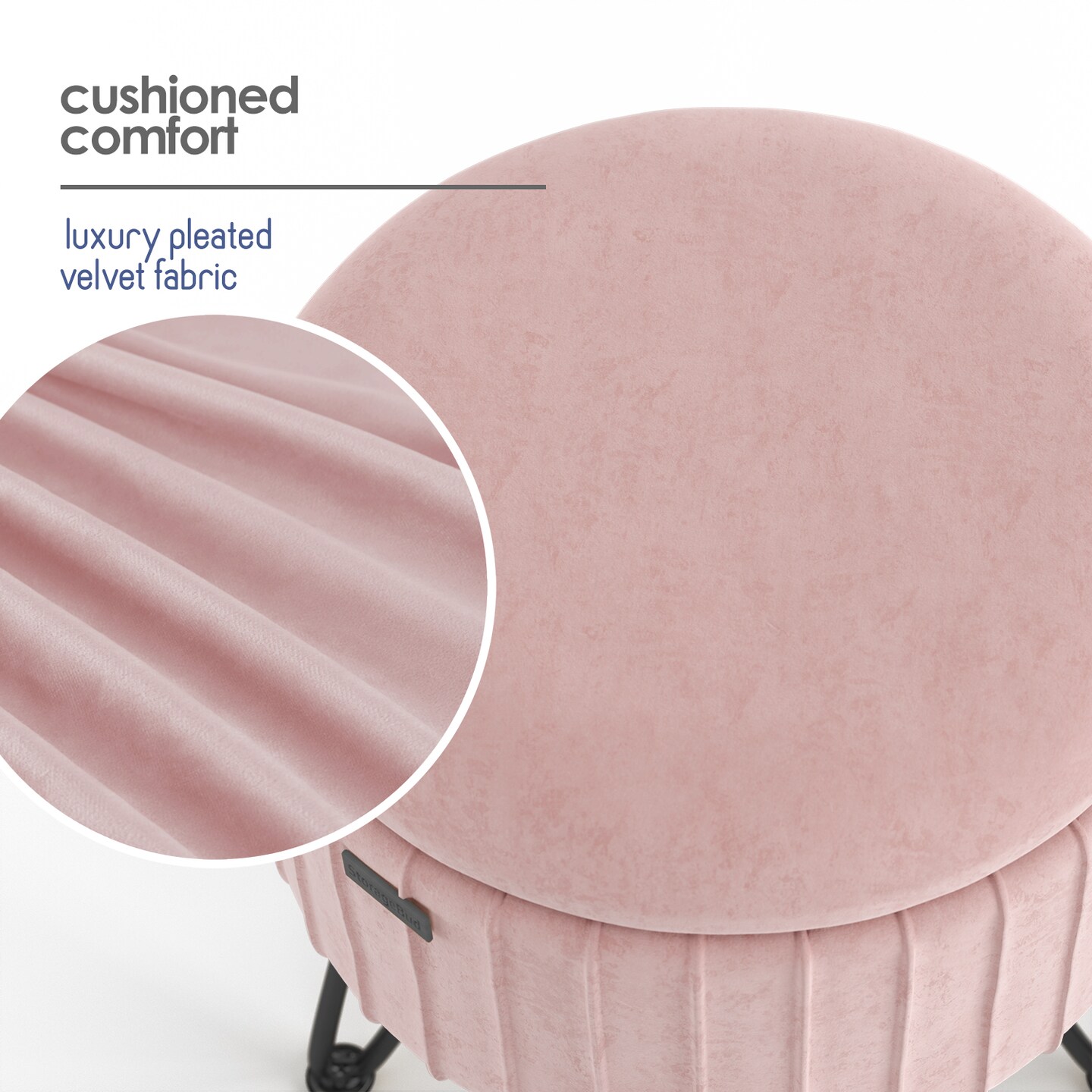 StorageBud Pleated Velvet Storage Ottoman