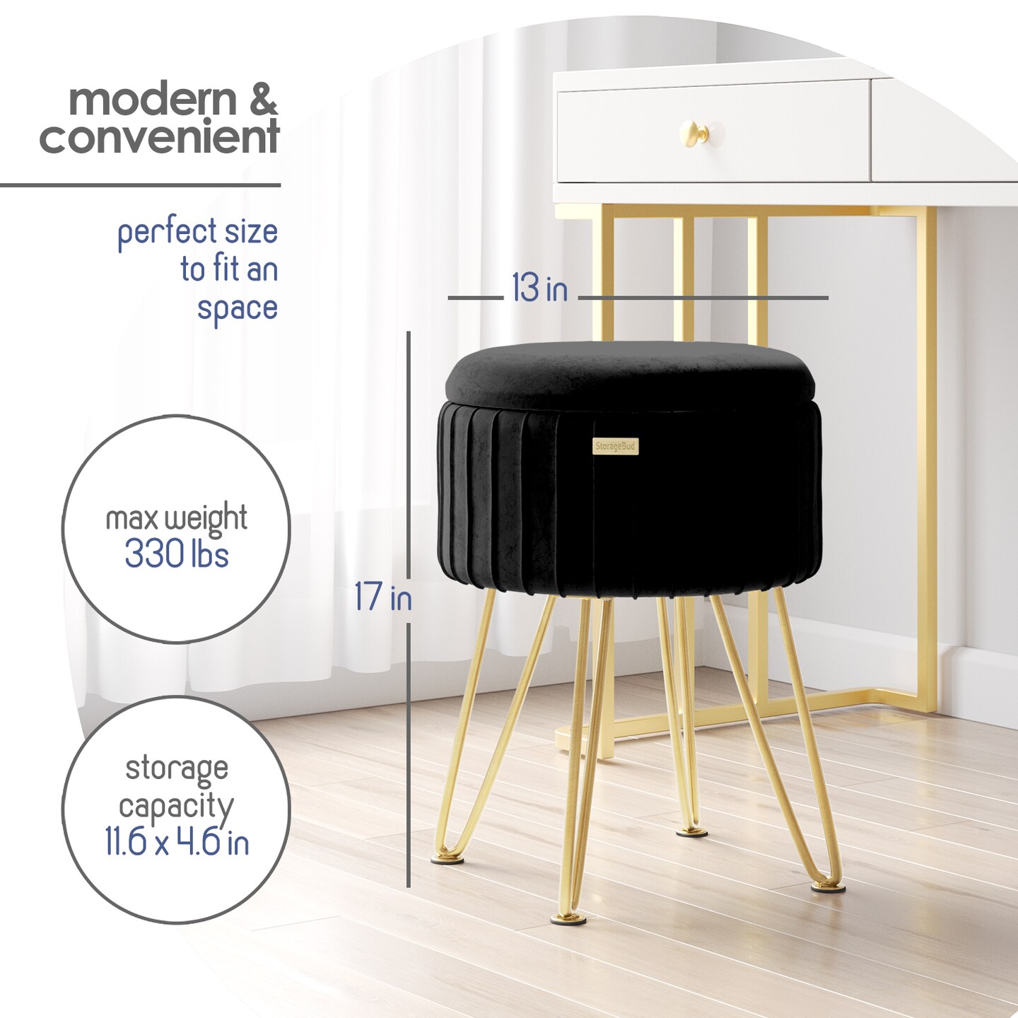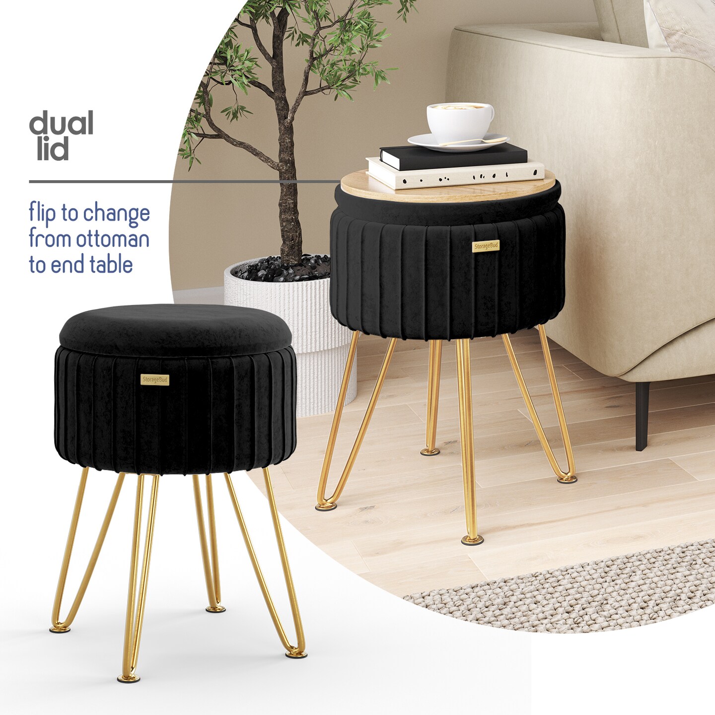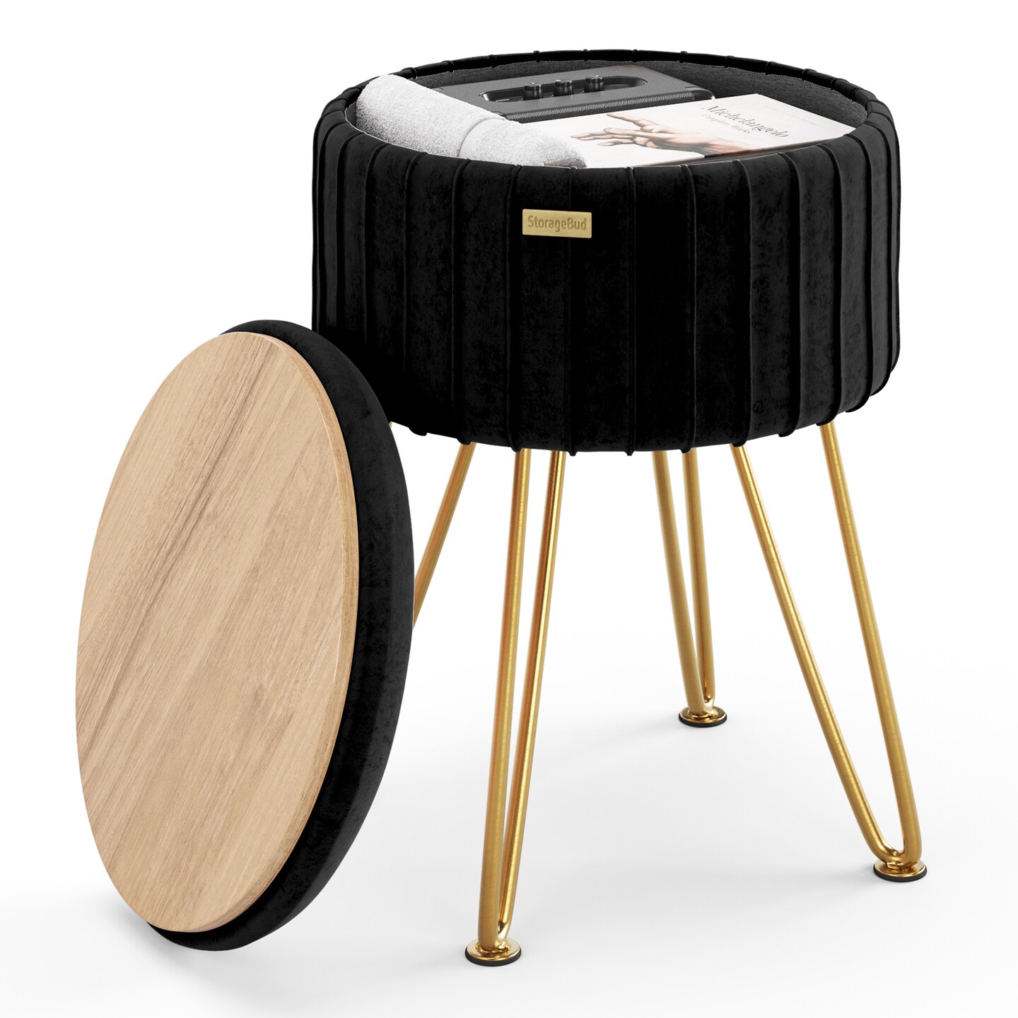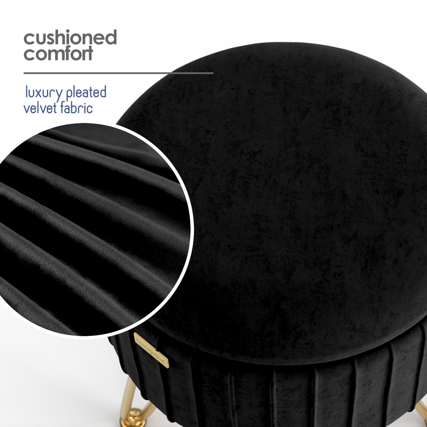 StorageBud Pleated Velvet Storage Ottoman