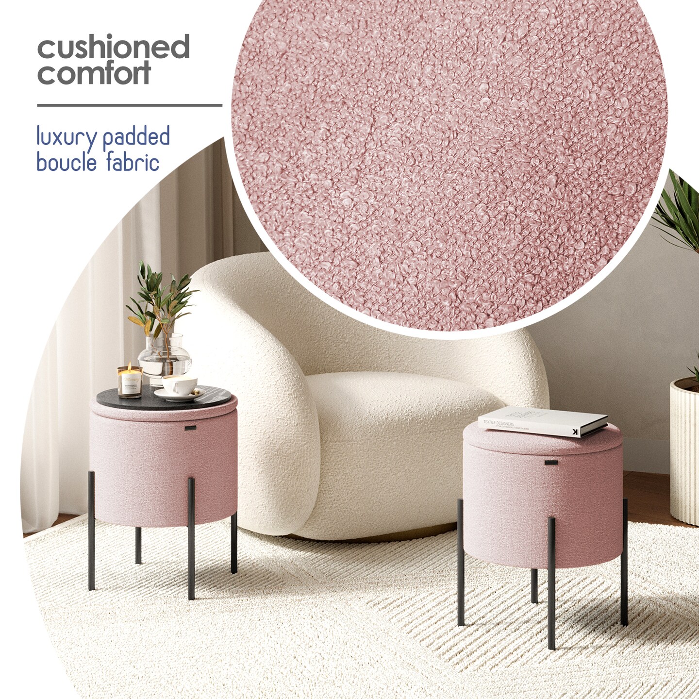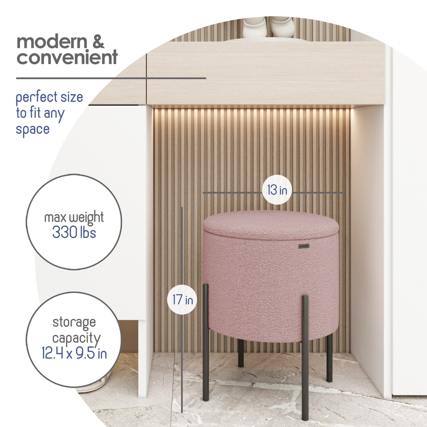 StorageBud Round Ottoman with Storage