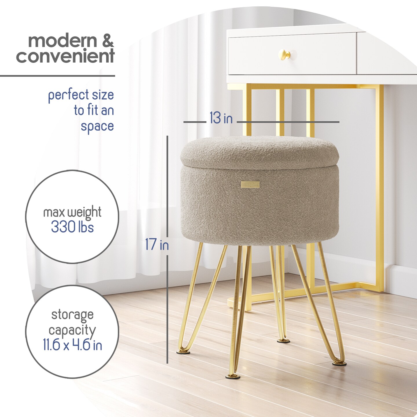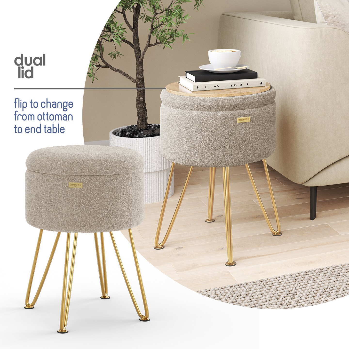 StorageBud Round Ottoman with Storage