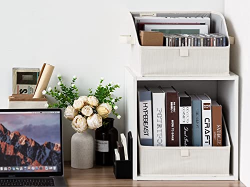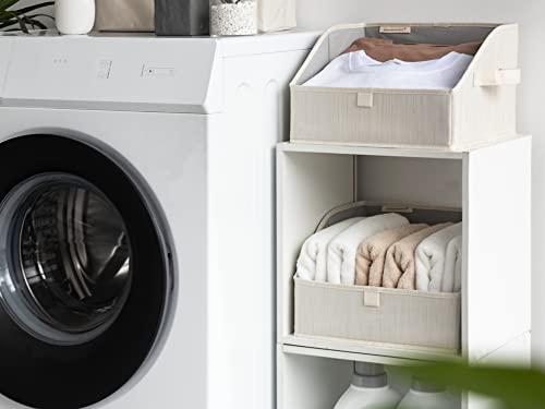 StorageWorks Closet Storage Bins, Trapezoid Storage Box for Shelves, Fabric Closet Bins and Organizing Baskets, Small, 3-Pack, Mixing of Beige, White & Ivory