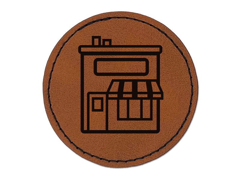 Storefront Market Business Round Iron-On Engraved Faux Leather Patch Applique - 2.5"