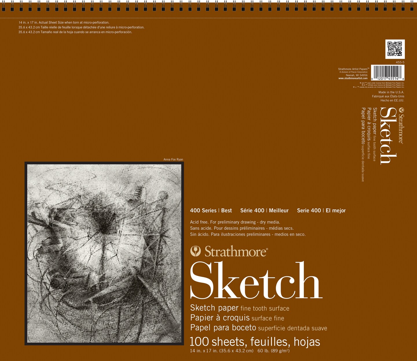 Strathmore 400 Series Sketch Pad 14"X17"-Spiral Bound Side, 100 Sheets