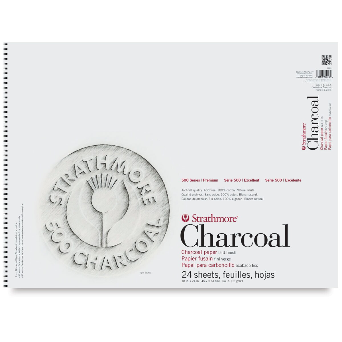 Strathmore 500 Series Charcoal Pad - 18" x 24", White, 24 Sheets