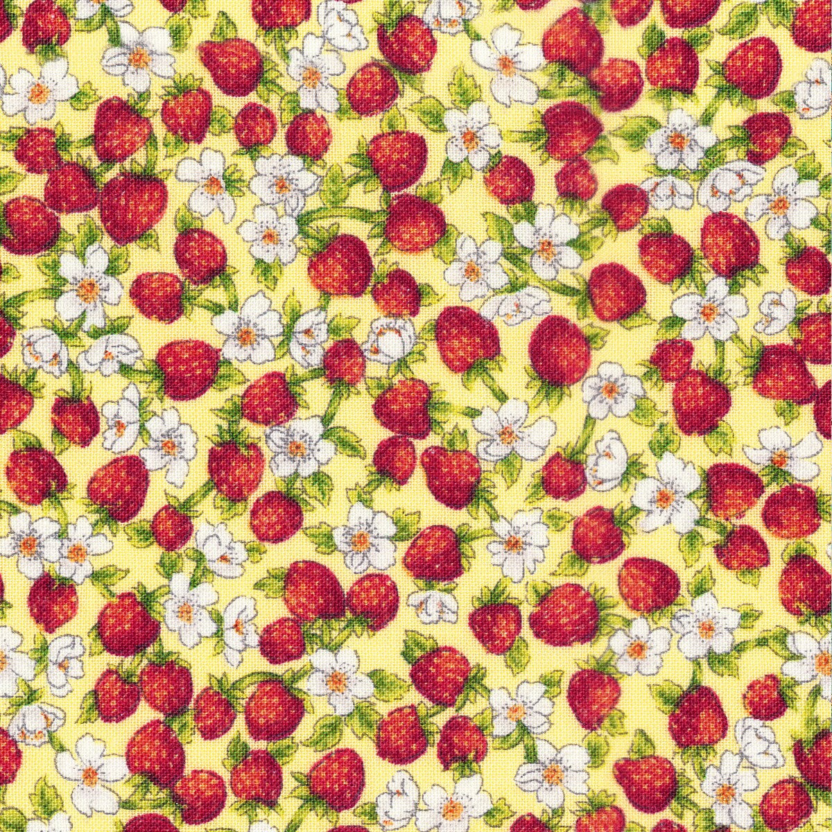 Strawberries Yellow Cotton Fabric | By The Yard | Sewing and Crafting | 44 inches wide