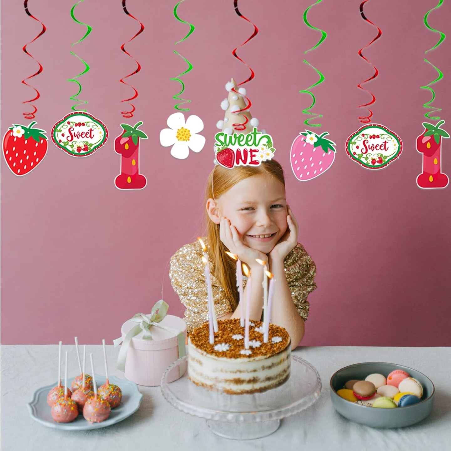 Strawberry Birthday Decorations, 40Pcs Sweet One Hanging Swirls Summer Fruit Decor