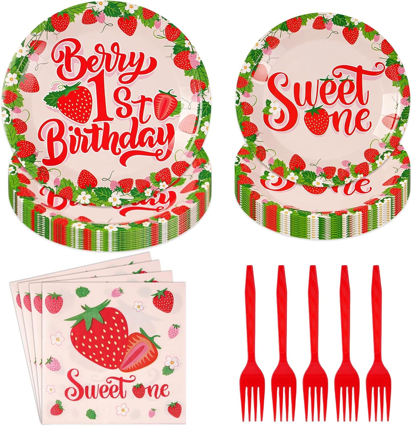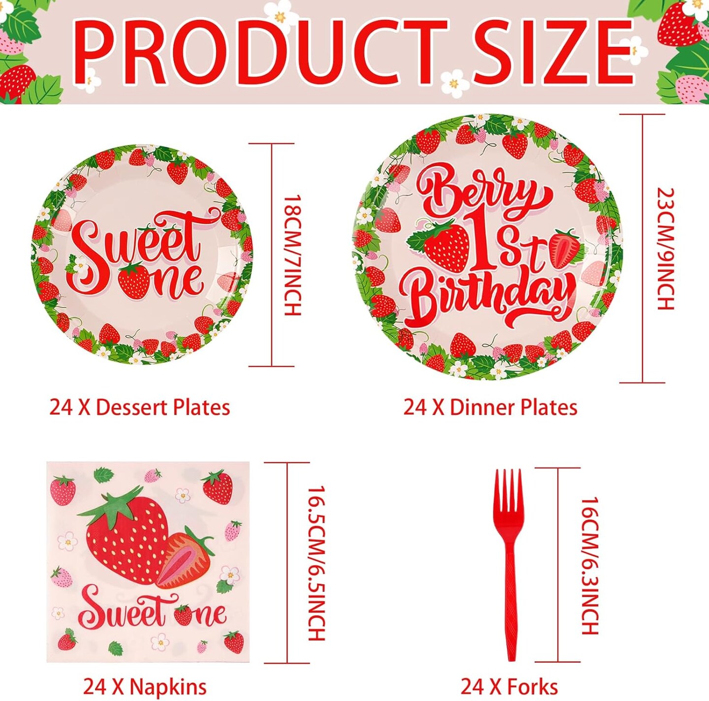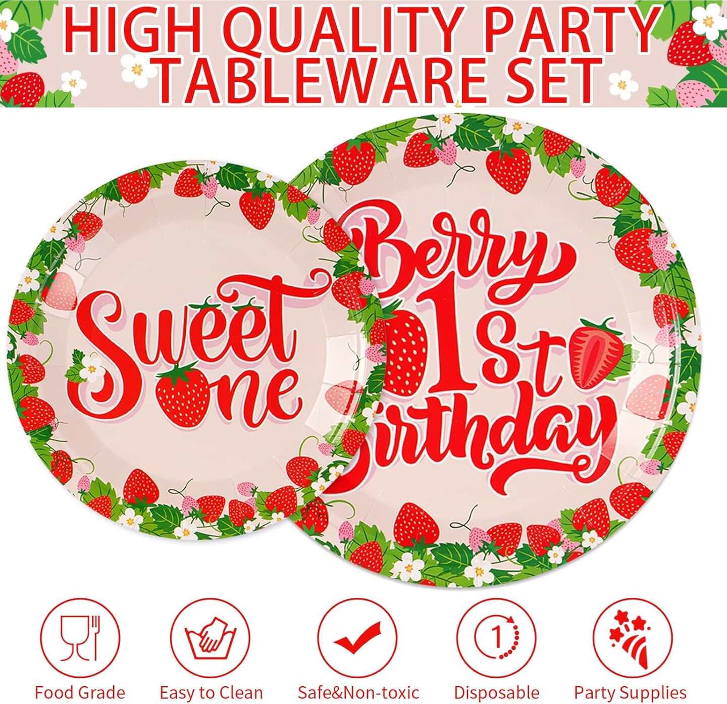 Strawberry Plates and Napkins Sweet One Tableware Set