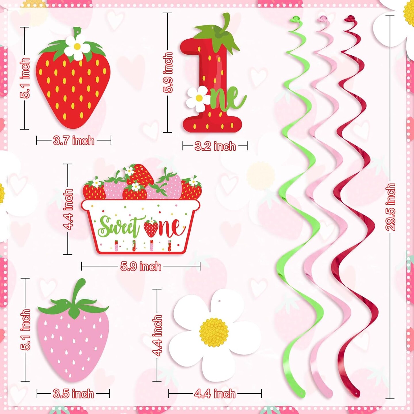Strawberry Swirls 1st Birthday Hanging Decor | Berry Sweet Foil Streamers for Sweet One’s Party, Girl’s First Birthday & Summer Fruit Themed Supplies