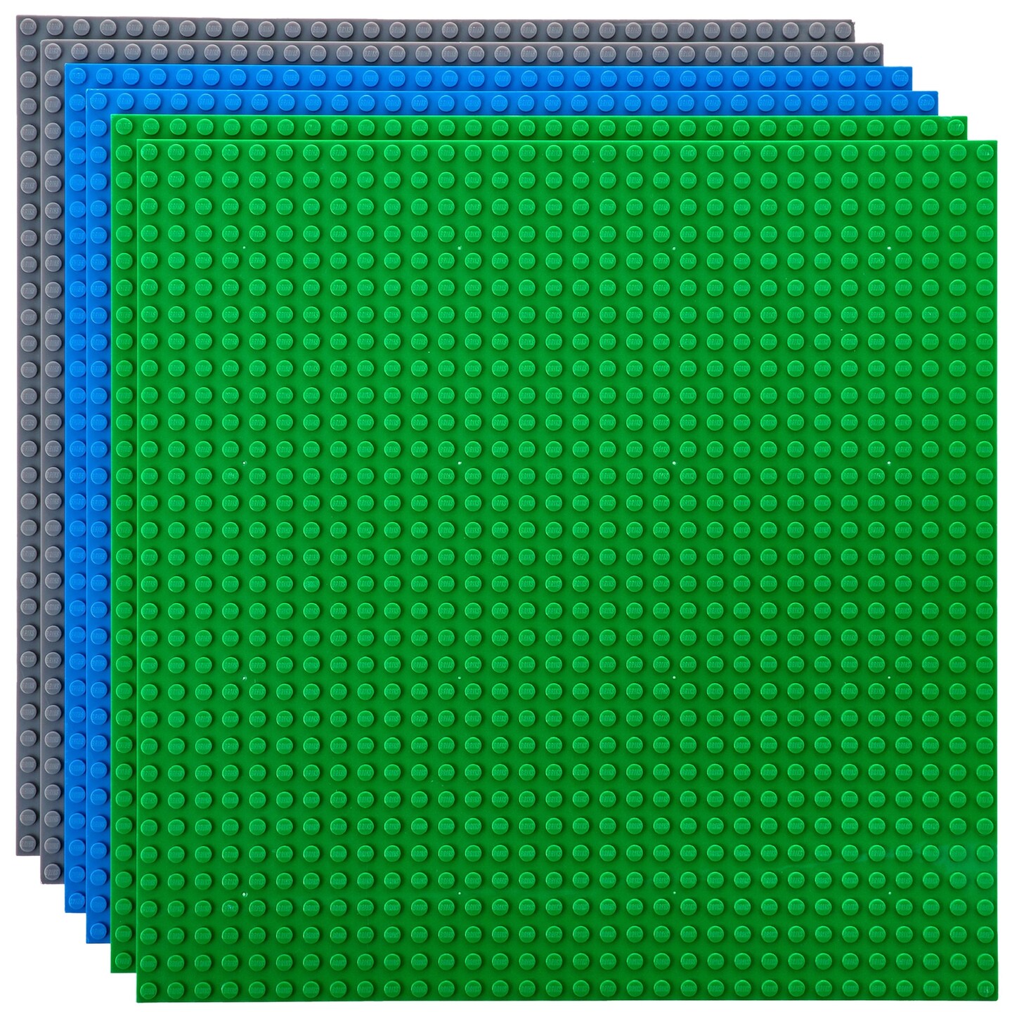 Strictly Briks Stackable Baseplates - 6 Pack Compatible with Classic Lego & Major Brick Brands, 10 x 10 in with 32 x 32 Studs, Toy Building Plates Boards, Kids Easter Gift, Blue Grey Green