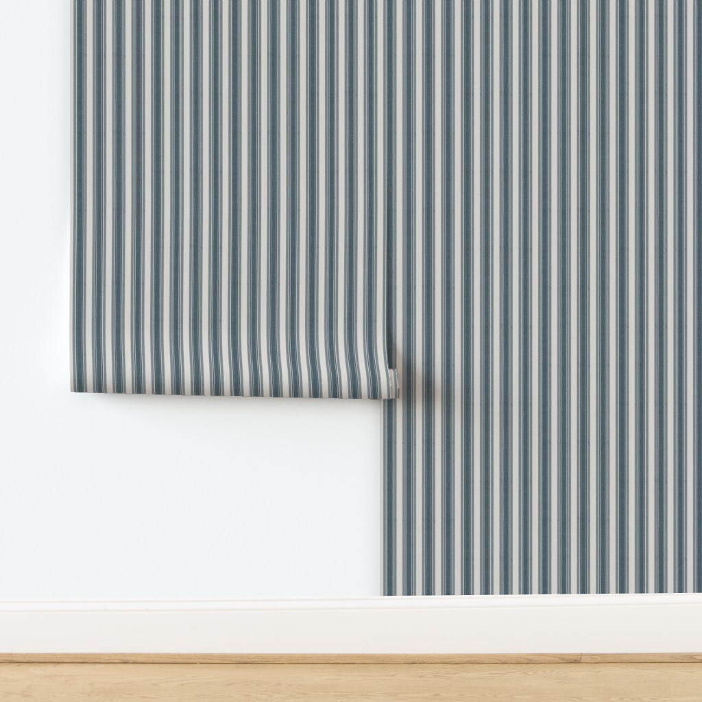 Stripe Navy French Farmhouse Cottage Custom Removable Wallpaper by Spoonflower Peel & Stick Wallpaper 2FT Wide