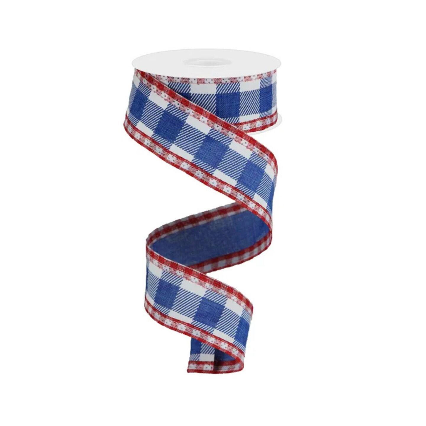 Striped Check Gingham Edge Ribbon Blue White Red Wired | 1.5x10yd-RGA1798A1