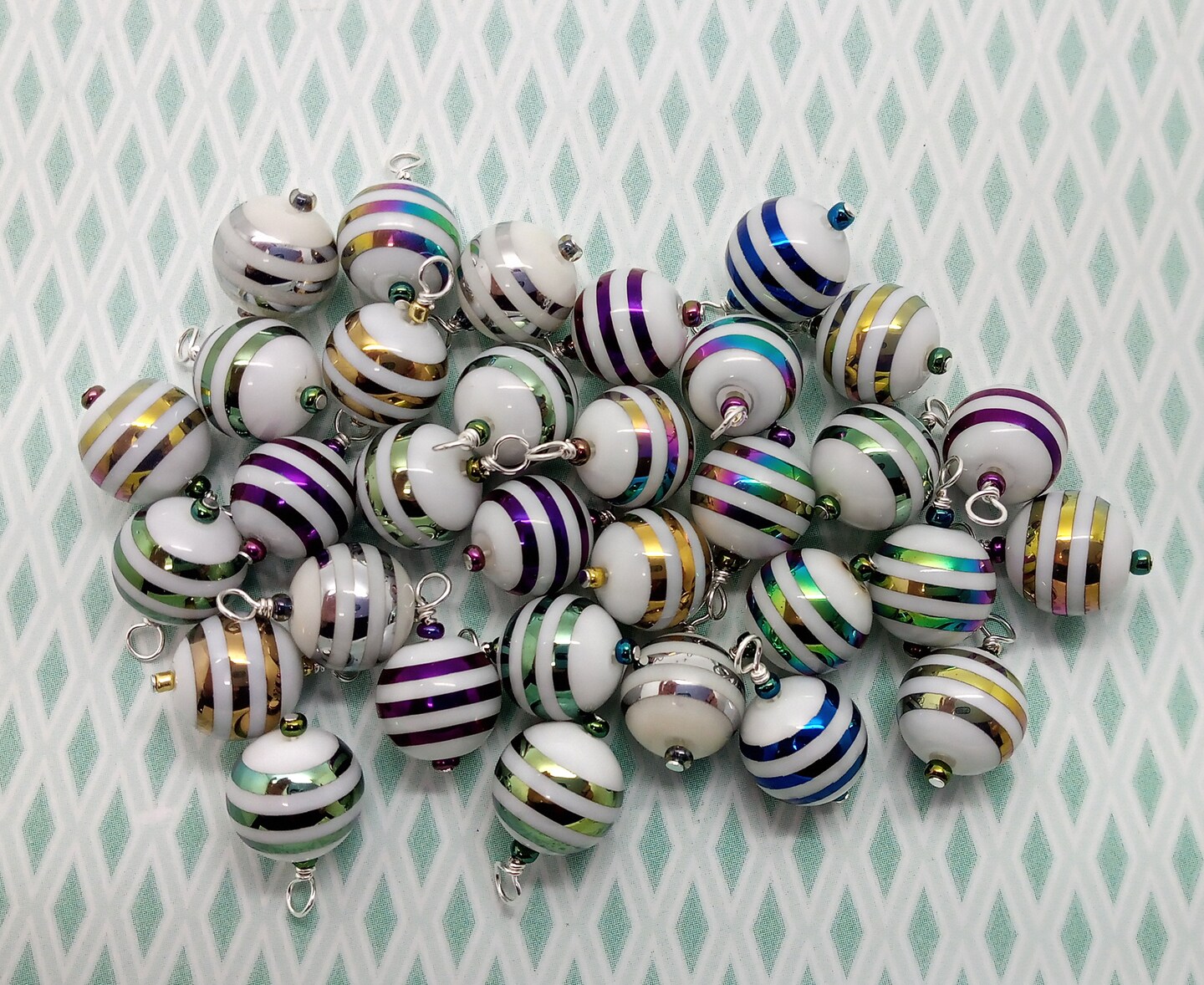 Striped Miniature Ornament Mix, 20 pc, Mini Glass Baubles for Dollhouse, 1:6 or 1:12 Scale, Adorabilities