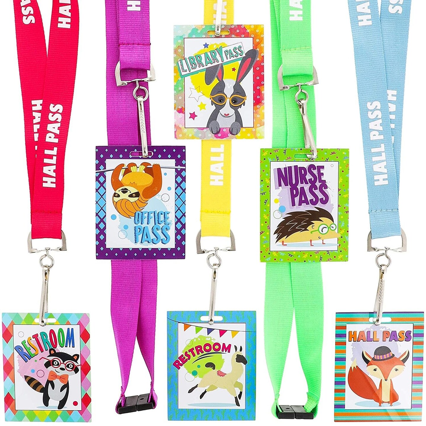 Student Classroom Hall Passes with Lanyards for Teachers, 6 Destinations (12 Pack)