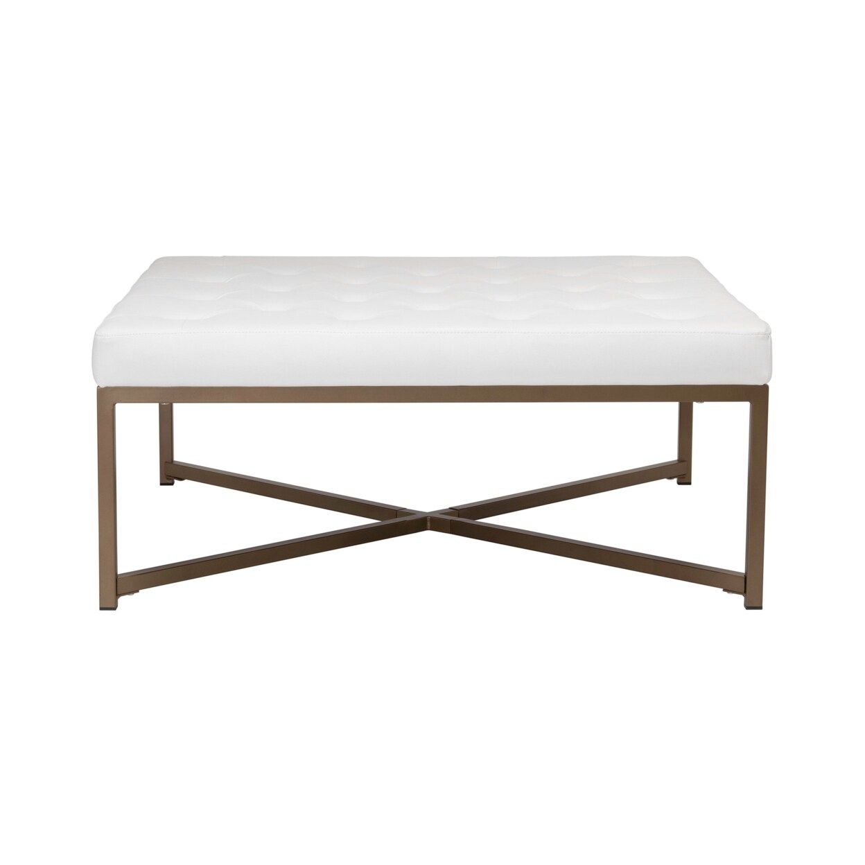 Studio Designs Home Camber Modern Large Cocktail Tufted Square Ottoman with Metal Frame and Blended Leather - Bronze,