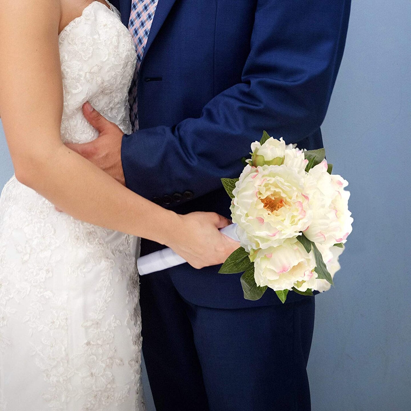 Stunning Cream Pink Silk Peony Bouquet - Elegant and Realistic Floral Arrangement