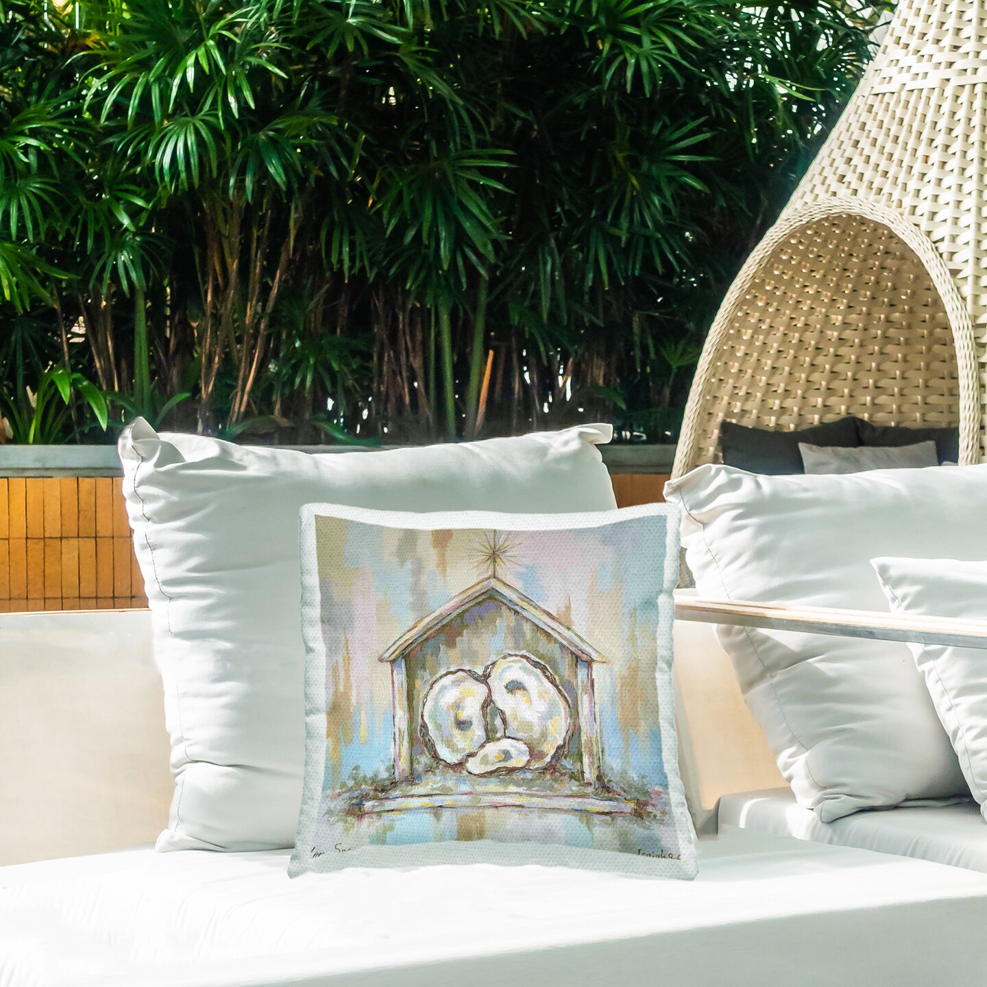 Stupell Industries A Child is Born Oyster Nativity Outdoor Printed Pillow, design by Linda Sperruzzi, 18 x 7 x 18