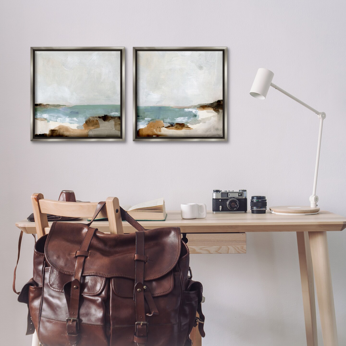 Stupell Industries Abstract Beach Cove Landscape Cliffs Framed Floater Canvas Wall Art