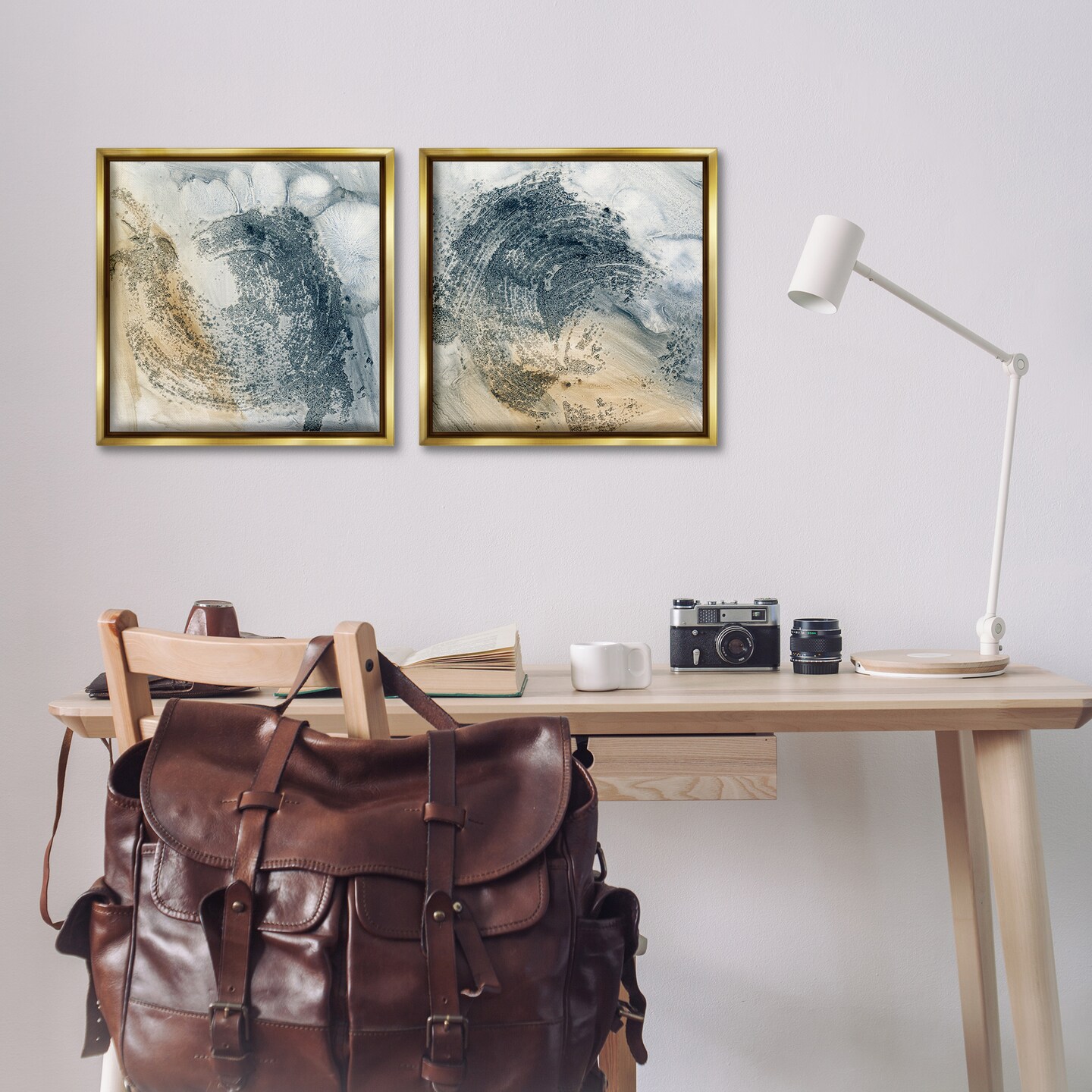 Stupell Industries Abstract Beige Blue Wave 2 pc Framed Floater Canvas Wall Art Set Design by Ethan Harper