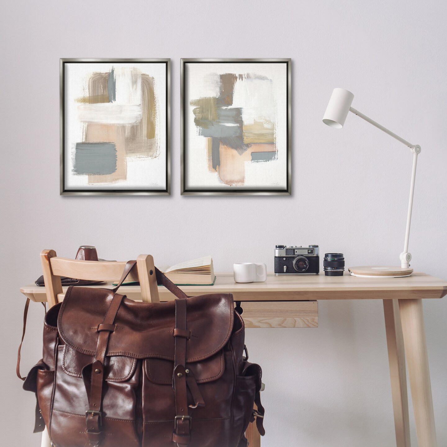Stupell Industries Abstract Beige Brush Stroked Neutrals 2 pc Framed Floater Canvas Wall Art Set Design by Stella Chang